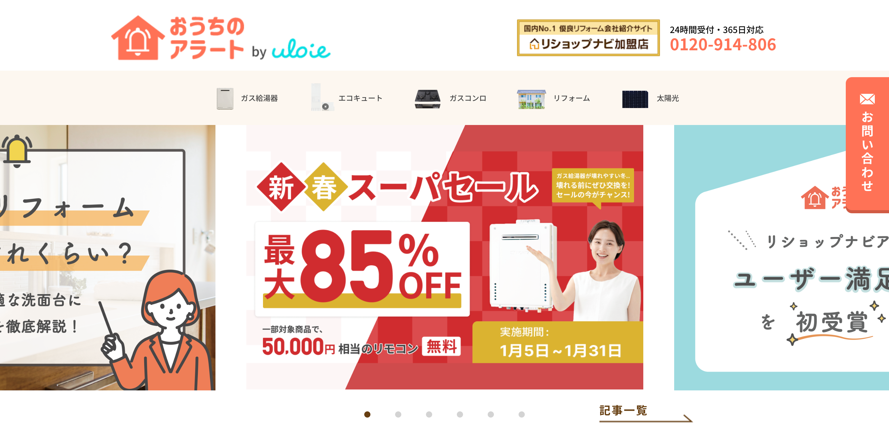 「おうちのアラート」は、株式会社ウルオイエが運営する住宅リフォーム全般を取り扱うWebサービスです。