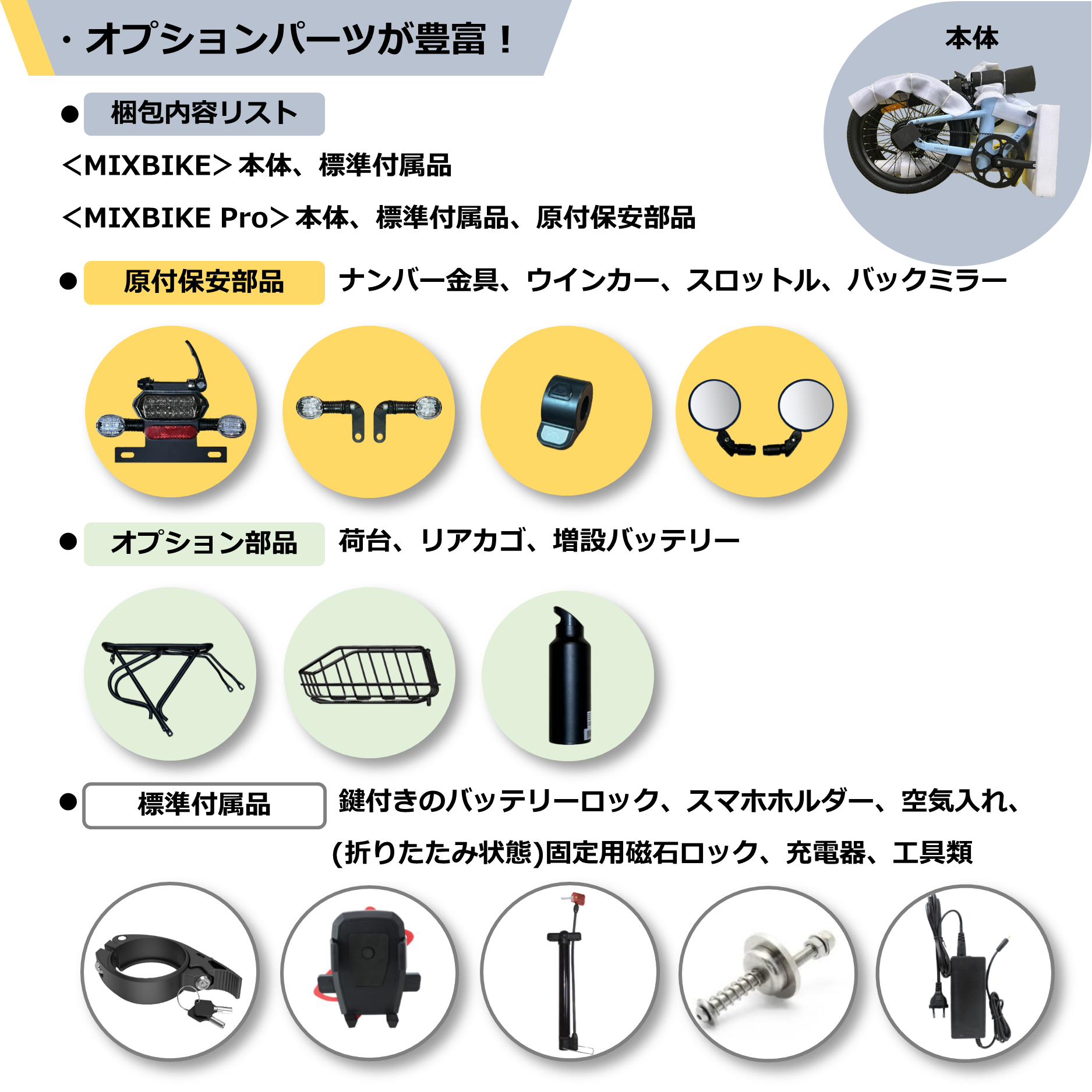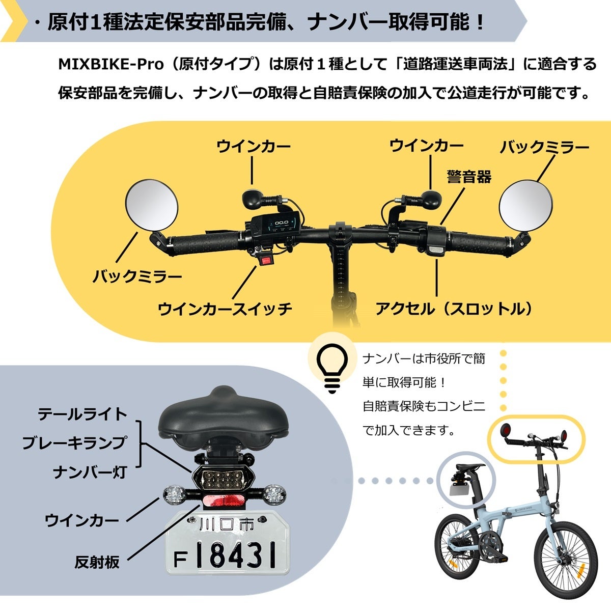 MIXBIKE Pro(原付タイプ)は原付1種として法定保安部品を完備しています。