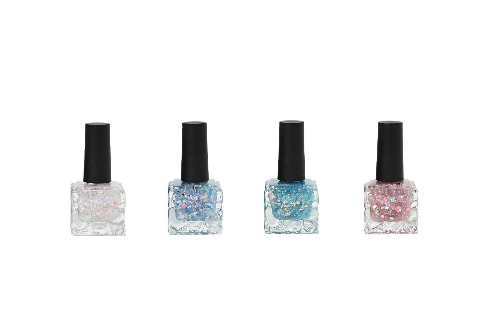 やぎ座(ホワイトオーロララメ)、みずがめ座(ブルーオーロララメ)、うお座(ブルーラメ)おひつじ座(ピンクオーロララメ)12ml 1,980円(税込)
