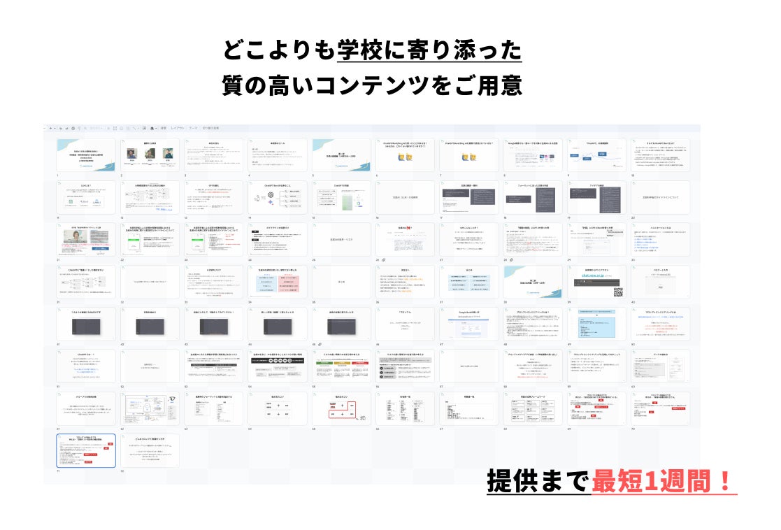 生成AIのご利用経験がない中で急に生成AIが使えるようになっても…という声を解決するため、教員向けの生成AI教員研修プログラムをご準備しております。