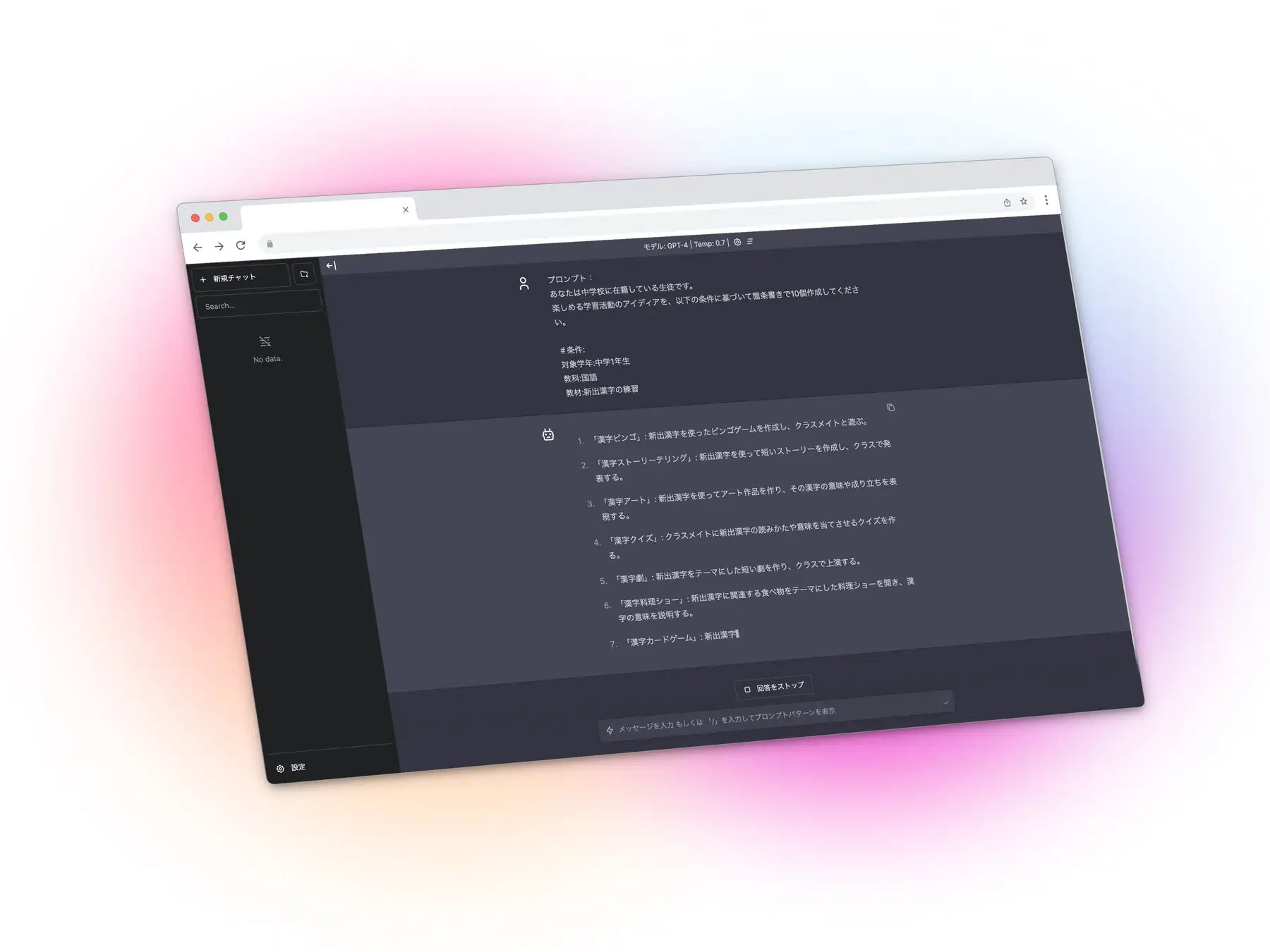 経産省の補助金活用で、情報セキュリティに対応した教育機関向けプライベート生成AIクラウド「学校AI」と生成AI研修が一定期間無料に。チャット内容は外部に流出することなく、プライバシーが保護されます。