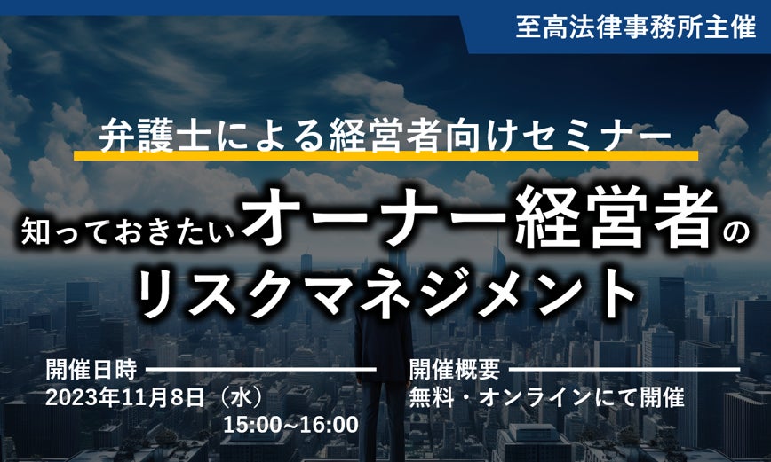 「経営者必見!~知っておきたいオーナー経営者のリスクマネジメントの極意~」を11月8日(水)無料・オンラインにて開催いたします