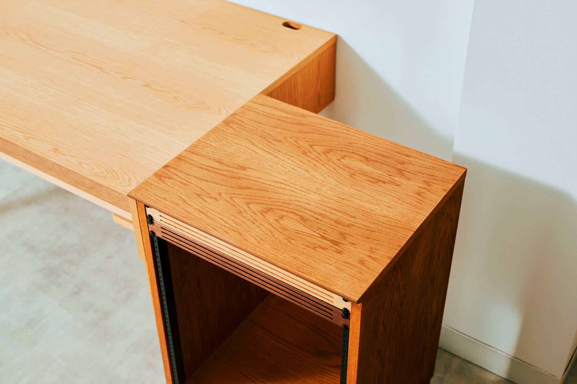 上質で味わいのある⾃然素材で作られたナチュラルな風合いとミニマルデザインが、スタジオのみならず普段の生活に溶け込んだ制作スペースとしてもマッチします。