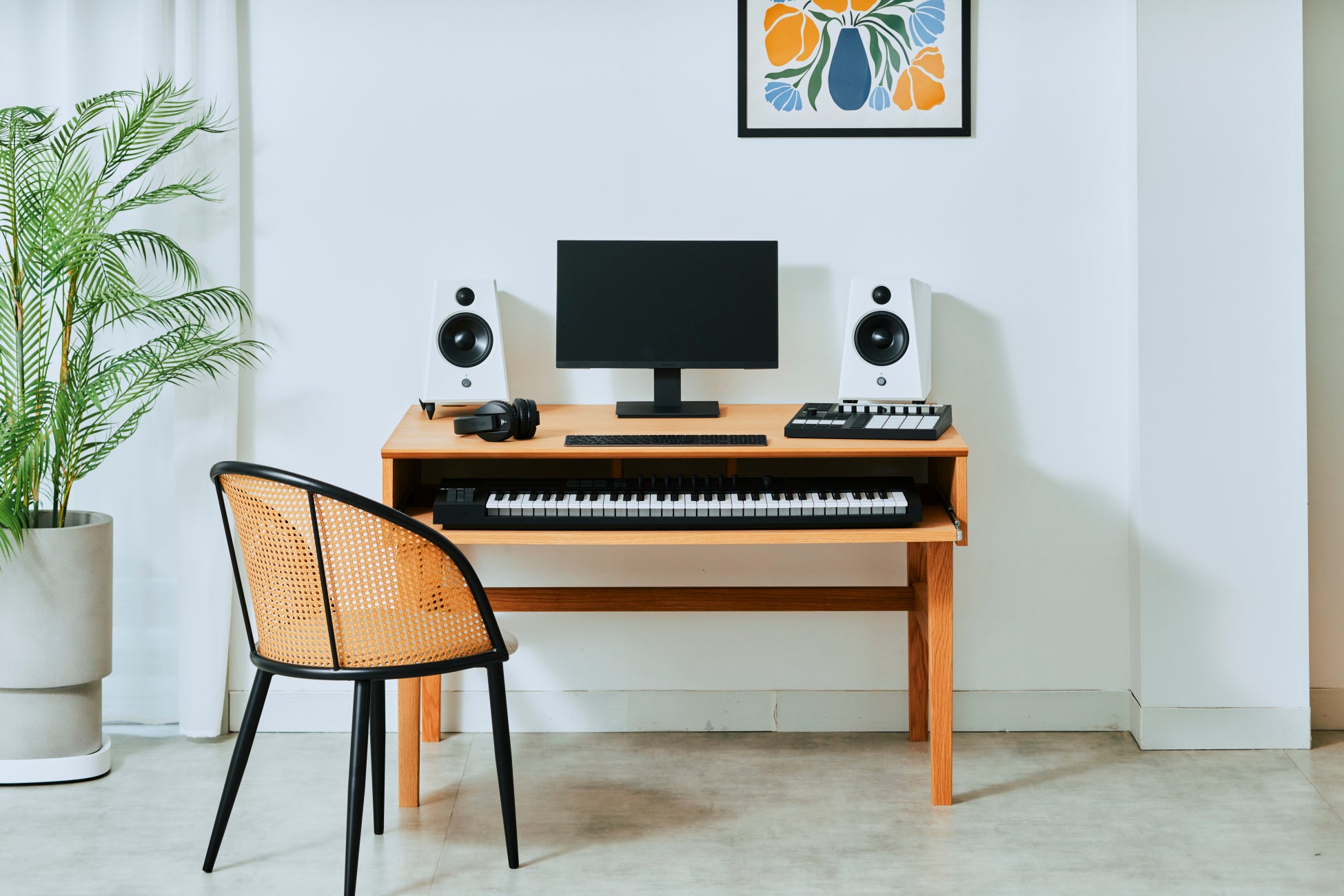 WAV+ LLC(ウェーブプラス合同会社)(代表:岩田裕大、本社:東京都府中市)は、現代のサウンドクリエーターが求める要素を極限まで満たしたDTMデスク「.mudesk」を昨年8月に販売開始。発売からご要望の多かったキーボードスライド収納のみ搭載したフラットタイプ「.mudesk flat (ミュデスク フラット)」を2024年12月26日より現在ラインナップに加え受注を開始致します。