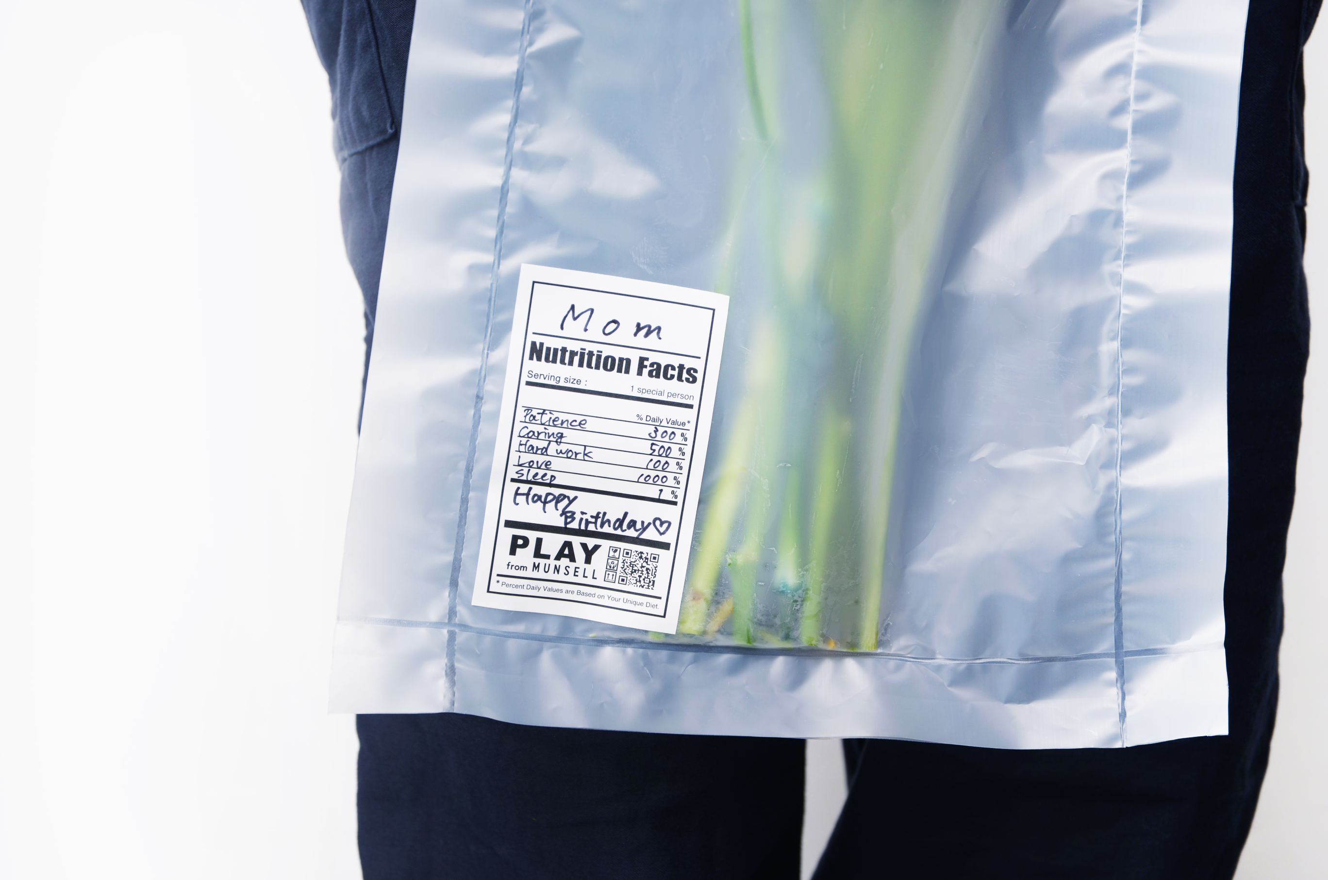食料品などに見られる栄養成分表をモチーフに想いやお渡しする方を構成する要素をメッセージに書き込み、ポジティブな印象でもネガティブな要素でもパーセンテージを調節することでオリジナルかつウィットに富んだメッセージシールを製作していただけます。