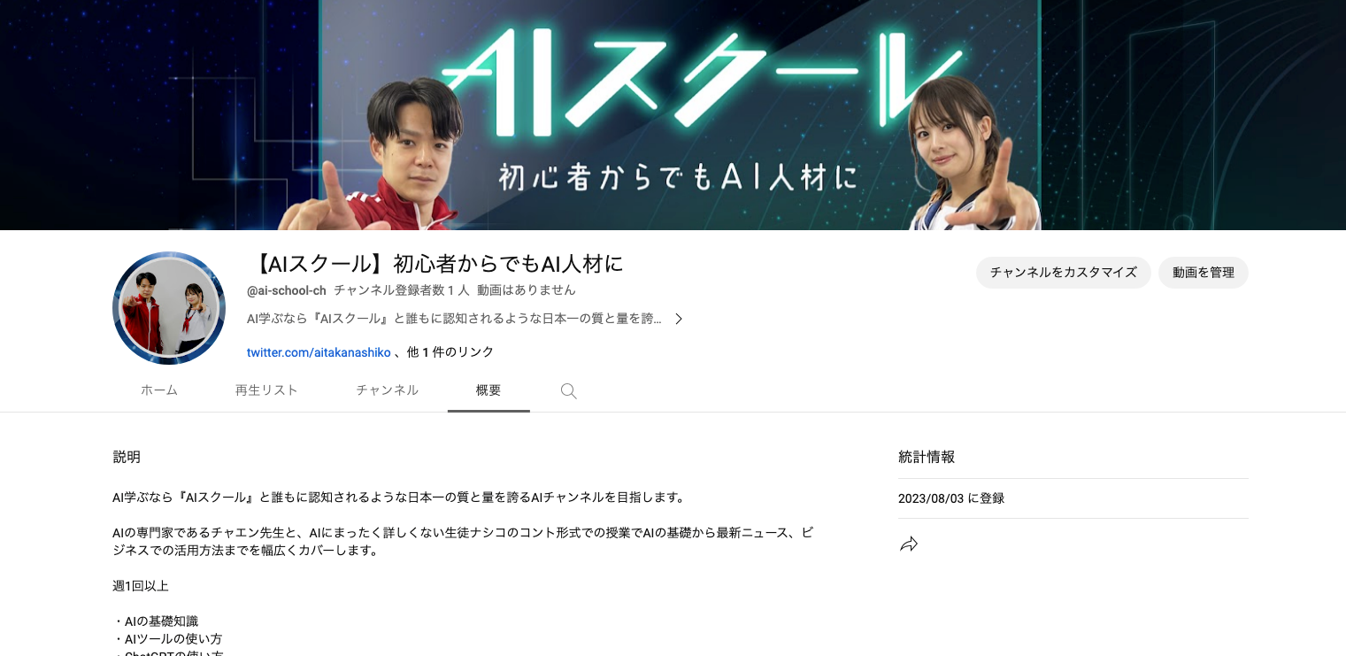 「生成AIを理解・活用して誰もが”AI人材”になる!」ことを目標としたを新たな試みが始まりました。それが”全ての人がAIで幸せに”をテーマにした当YouTubeチャンネル「AIスクール」です。