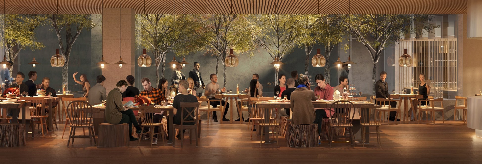 超予約困難店として知られる代官山本店と同様、薪火で焼き上げる肉料理を中心に、日本の旬の食材を使った垂涎のお料理をご堪能いただけます。ディナーではコース料理を中心としたメニュー、ランチには薪火焼きハンバーガーなどのカジュアルなメニューもご用意する予定です。