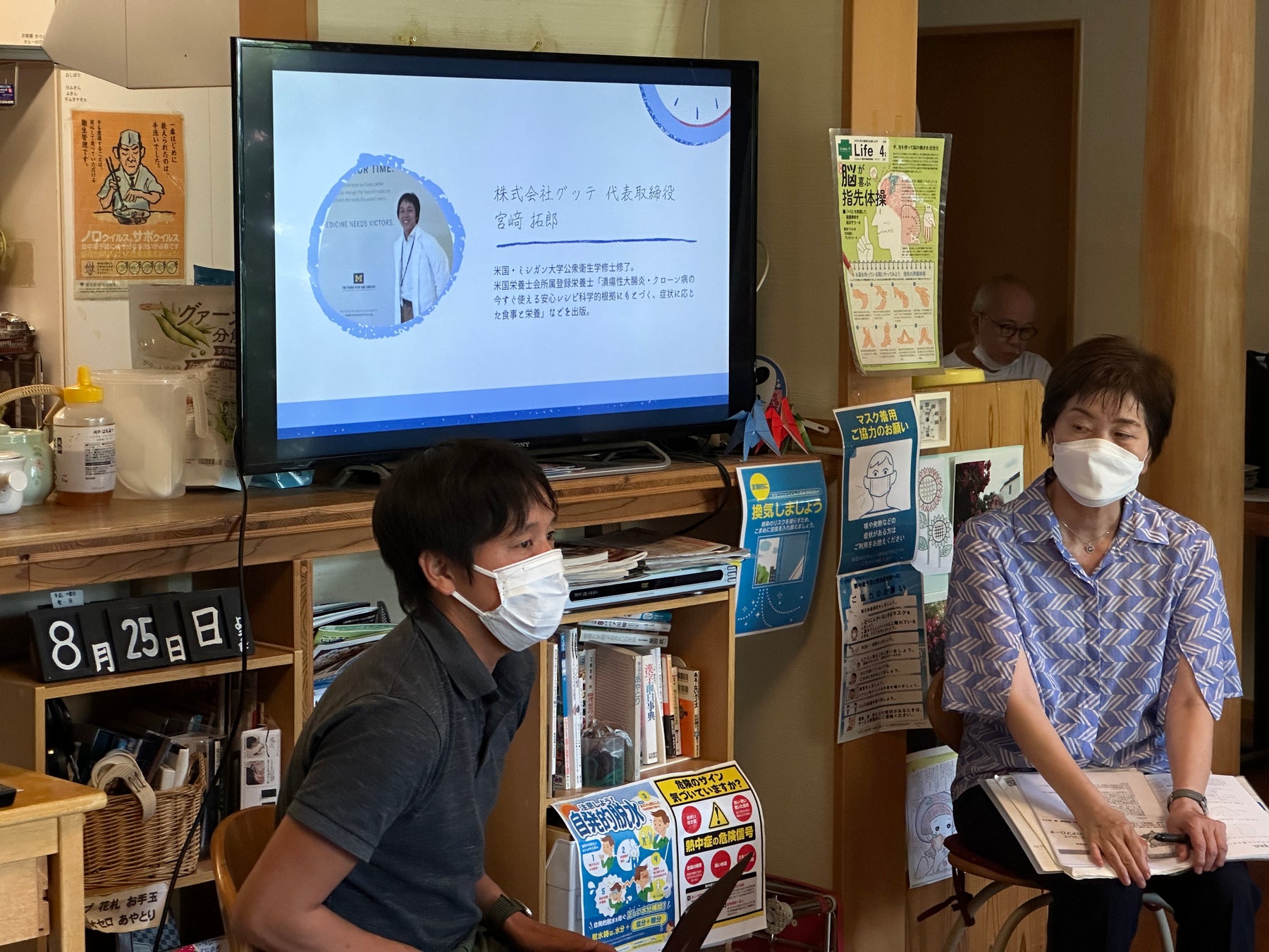けあばーす株式会社(本社:東京都板橋区、代表取締役:山中 裕太、以下「当社」)が提供する福祉施設の”推しゴト”アプリ『CareTO』の導入施設である、小規模多機能・グループホーム「しゃくじいの庭」(本拠地:東京都練馬区、代表取締役:青木 伸吾、以下「しゃくじいの庭」)と共同で、2024年8月25日(日)に「介護学べるサロン」開催しました。本サロンでは、「専門家に学ぶ 認知症と排便ケアのための実践栄養講座」をテーマに、株式会社グッテ(本社:東京都千代田区、以下「グッテ」)の代表取締役の宮﨑 拓郎氏と「しゃくじいの庭」看護師の秦 実千代氏を迎え、認知症患者の排便ケアに関する実践的な知識と最新のトレンドについて解説いただきました。