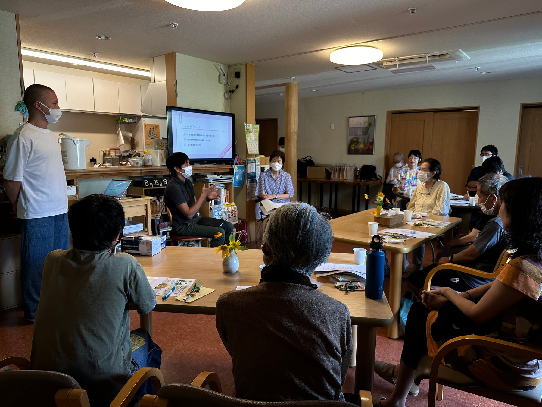 当社では、福祉施設への関心から日常の合間にお仕事(推しゴト)する人を募集するアプリを提供し、また、福祉施設にボランティアや職員、利用者を集めるためにPR及びマーケティング支援を行っています。この取り組みの一環として、「しゃくじいの庭」が主催する「介護学べるサロン」の企画・運営を通じて、介護施設と地域住民の接点の強化を目指しています。