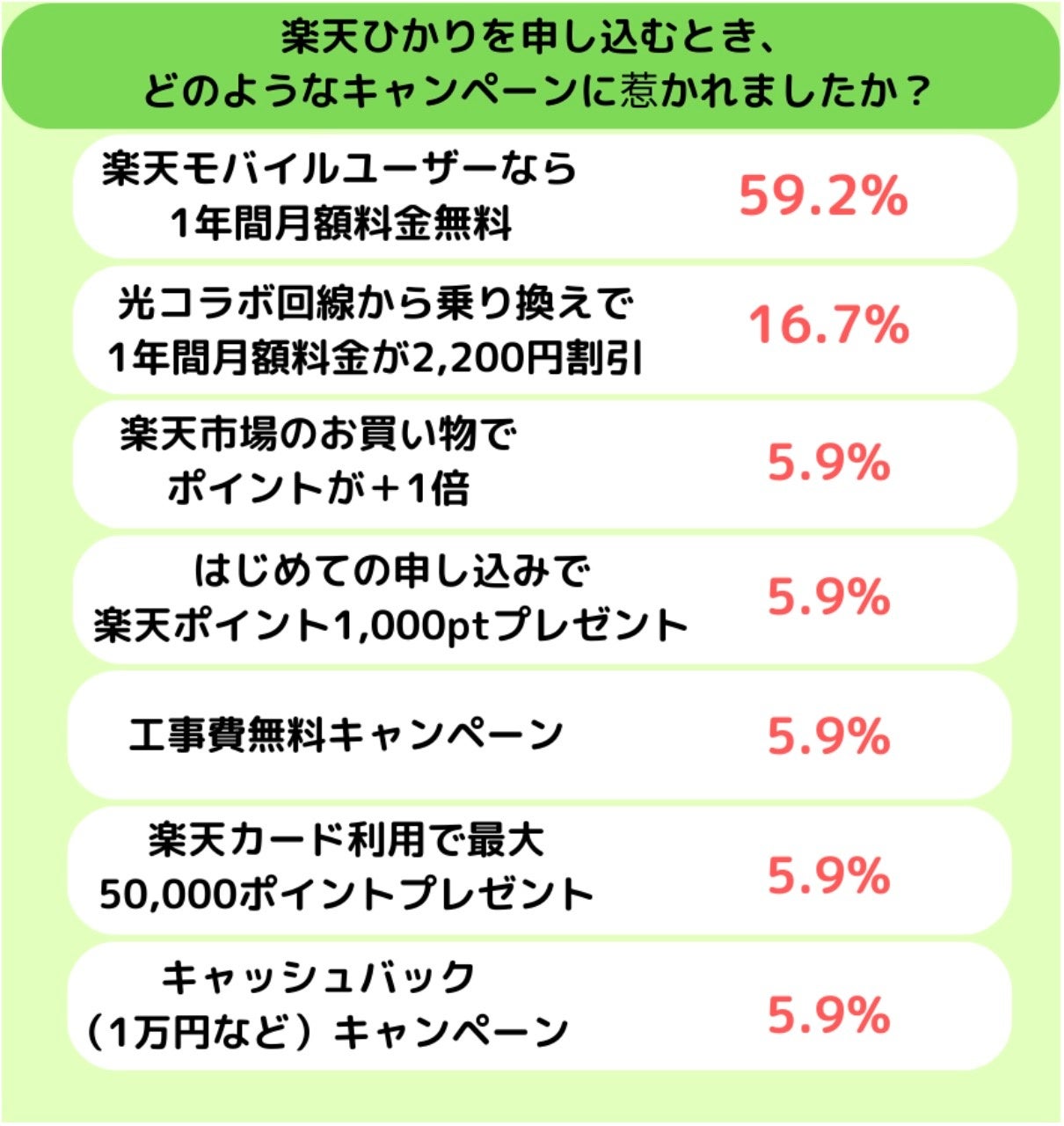 1)楽天ひかりを申し込むとき、どのようなキャンペーンに惹かれましたか?