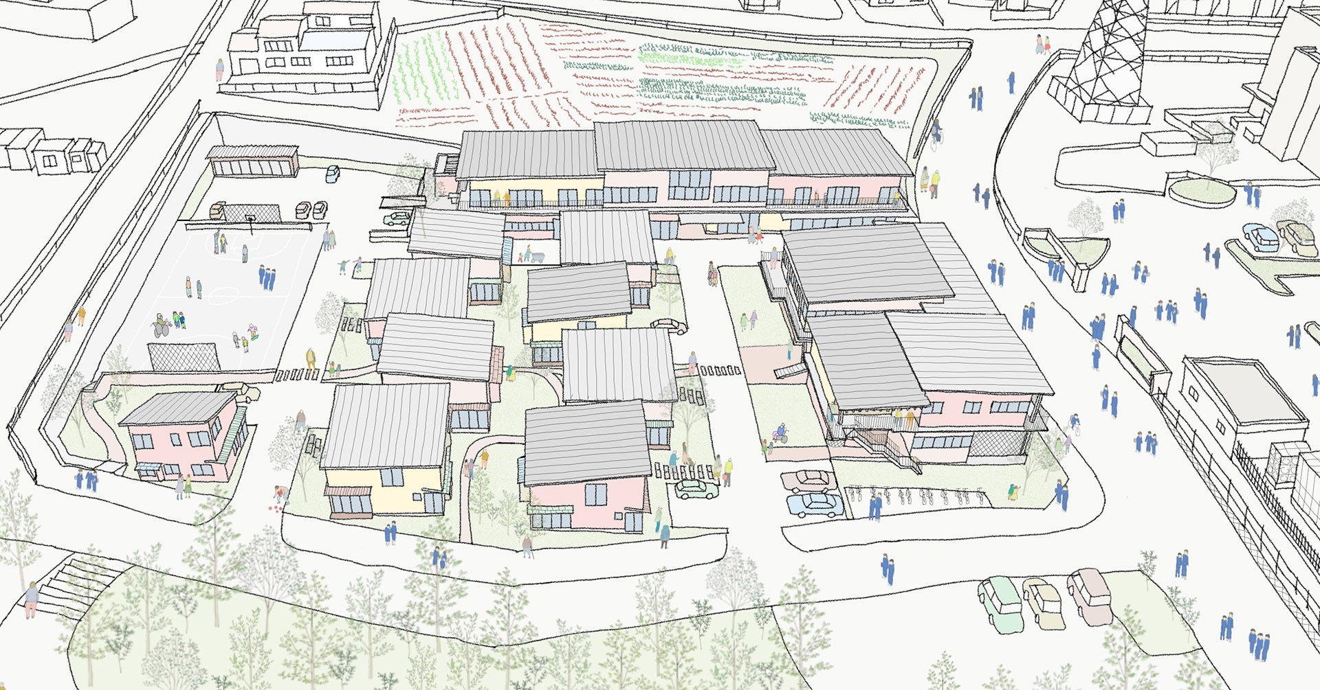 このほか、同一敷地内には、高齢者の認知症対応型共同生活介護と看護小規模多機能居宅介護、障害のある人の就労継続支援事業を整備いたしますので、世代や、対象分野にとらわれず、地域の人の暮らしを包括的に支援する福祉拠点となります。
