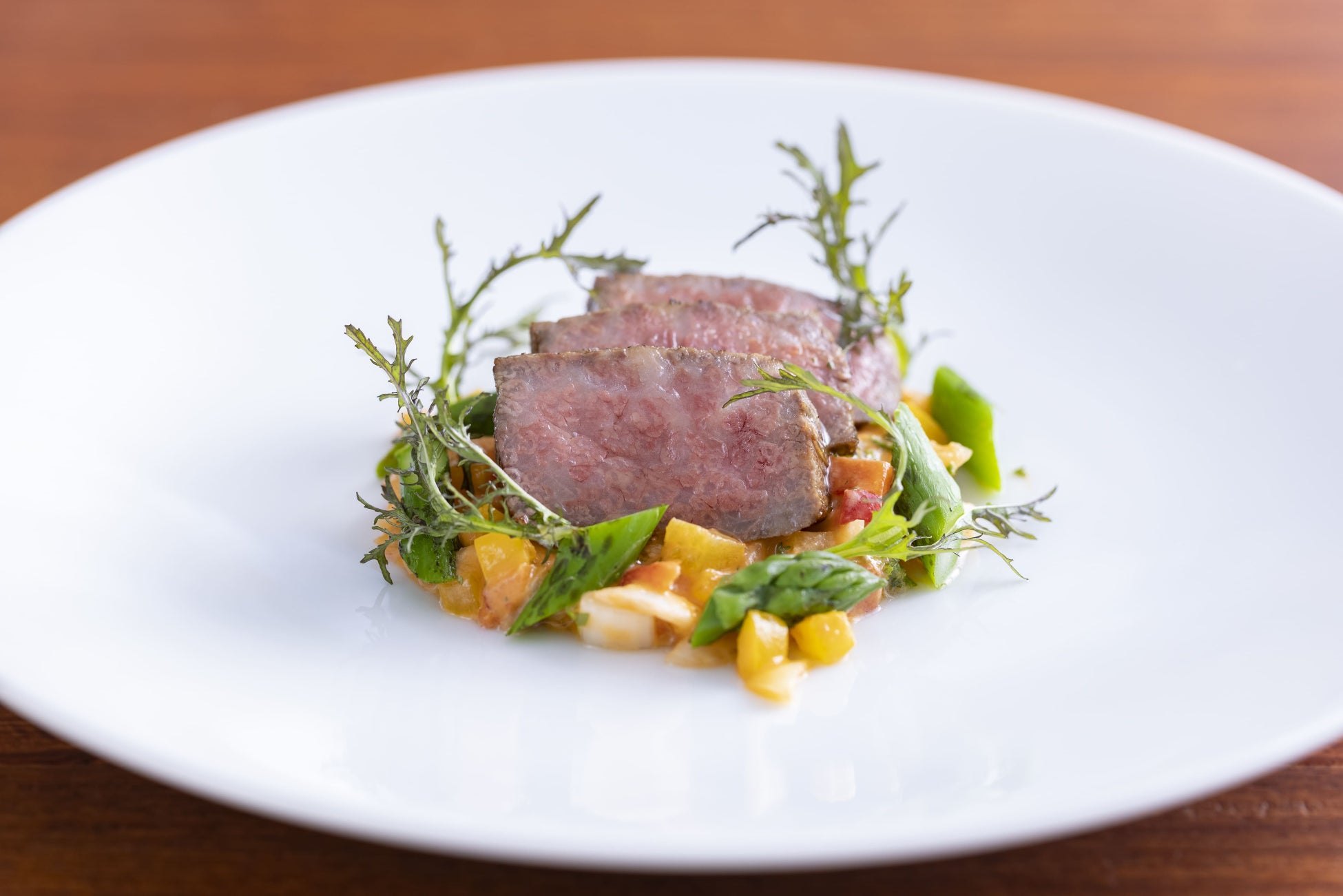 レストランで人気の「選べるメイン“黒毛和牛フィレ肉ステーキor活き鮑”コース」(通常1名様+3,300円)が差額なしの無料グレードアップとなるプラン