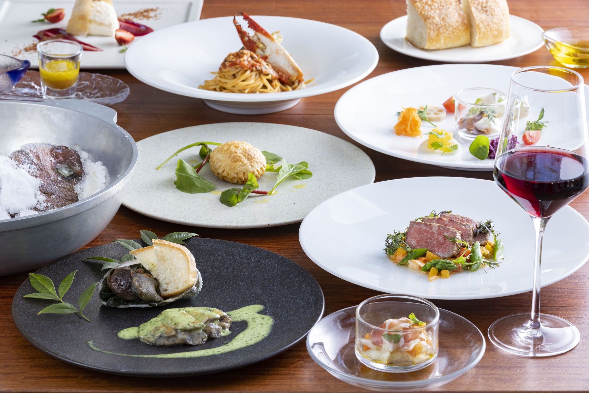 夕食内容:イタリアンフルコース「選べるメイン“黒毛和牛or活き鮑”コース」