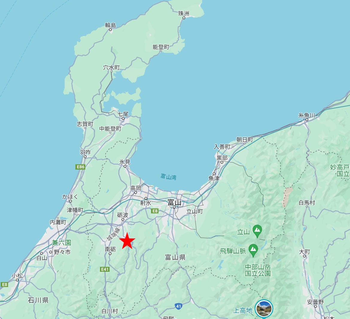 富山県西部の内陸部に位置し、JR金沢駅からバスで90分、JR新高岡駅からバスで約50分。