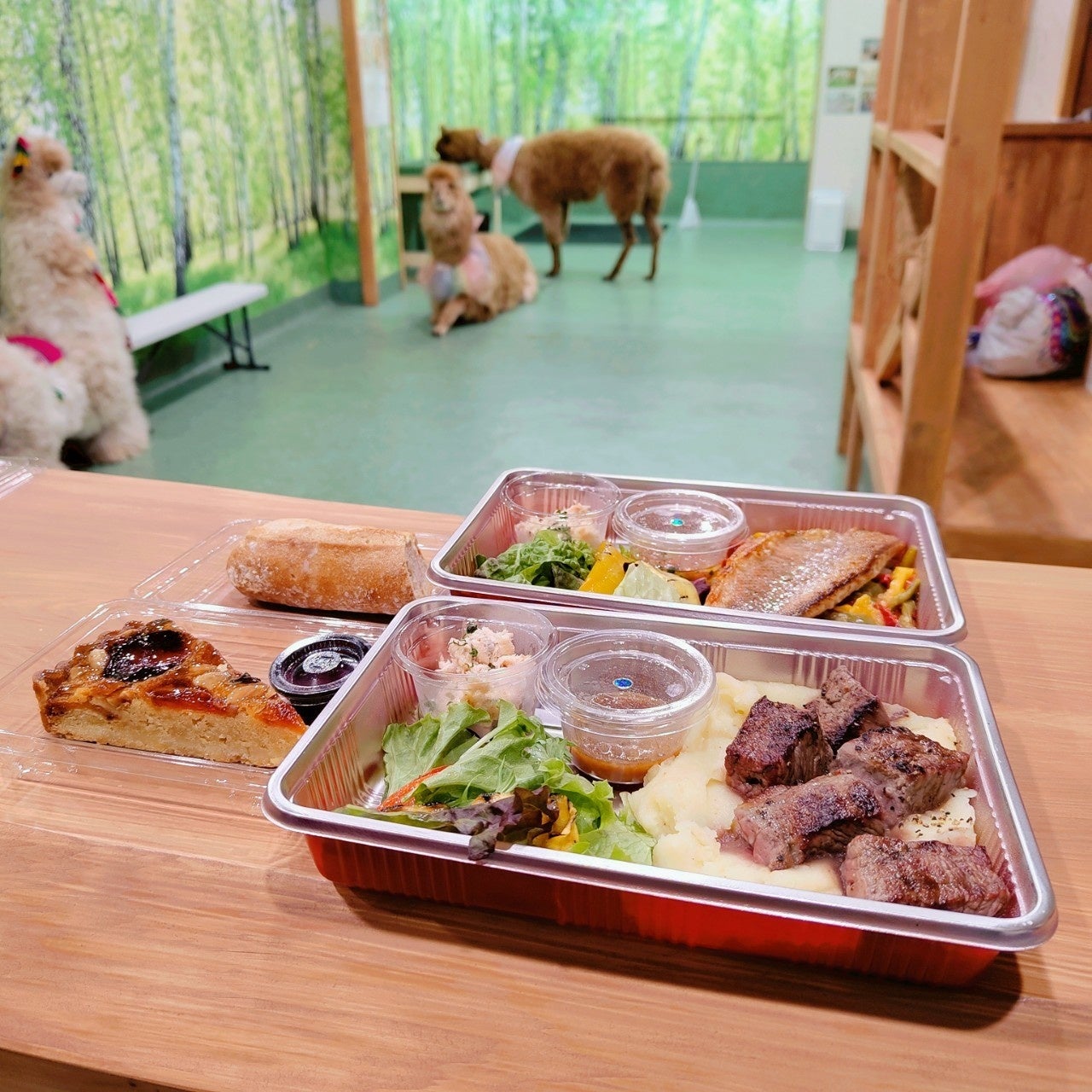 「アルパカとお散歩」「アルパカ飼育体験」に続き、アルパカを眺めながらランチが楽しめる「アルパカランチ」コースが追加されました。