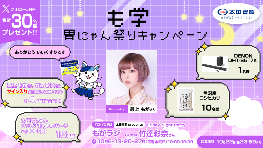 「も学」胃にゃん祭りキャンペーン豪華プレゼントが当たるキャンペーンを、太田胃にゃん公式X(@ohtainyan)にて実施決定!