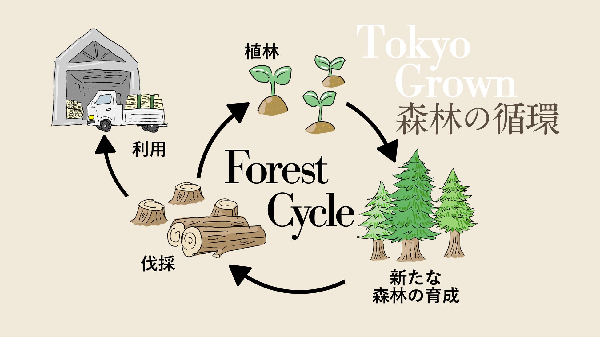 東京にあるオフィスだから、東京の森林で育った木を活かす。