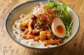 山形豚としめじの甘辛しょうゆ味の煮込みをたっぷりと盛り込み食べ応えをもたせつつ、白だしベースのスープであっさりと召し上がっていただける一品です。