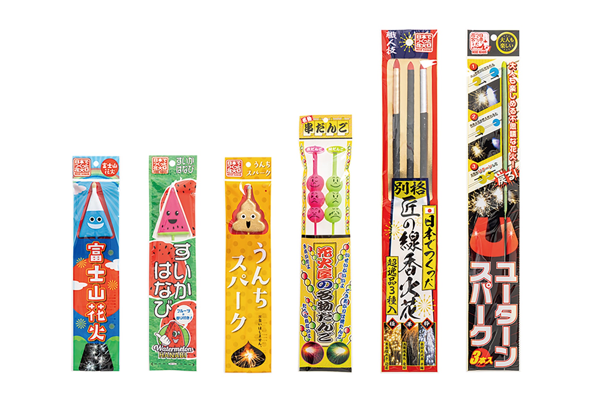 現在、ARを楽しめる花火は「別格(極上)匠の線香花火」「すいかはなび」「富士山花火」「うんちスパーク」「Uターンスパーク」「串だんご花火」の6種。気に入った花火は全国の小売店で買い求められるほか、井上玩具煙火オンラインショップでは6種すべてが揃った「花火ARセット」を購入可能です。