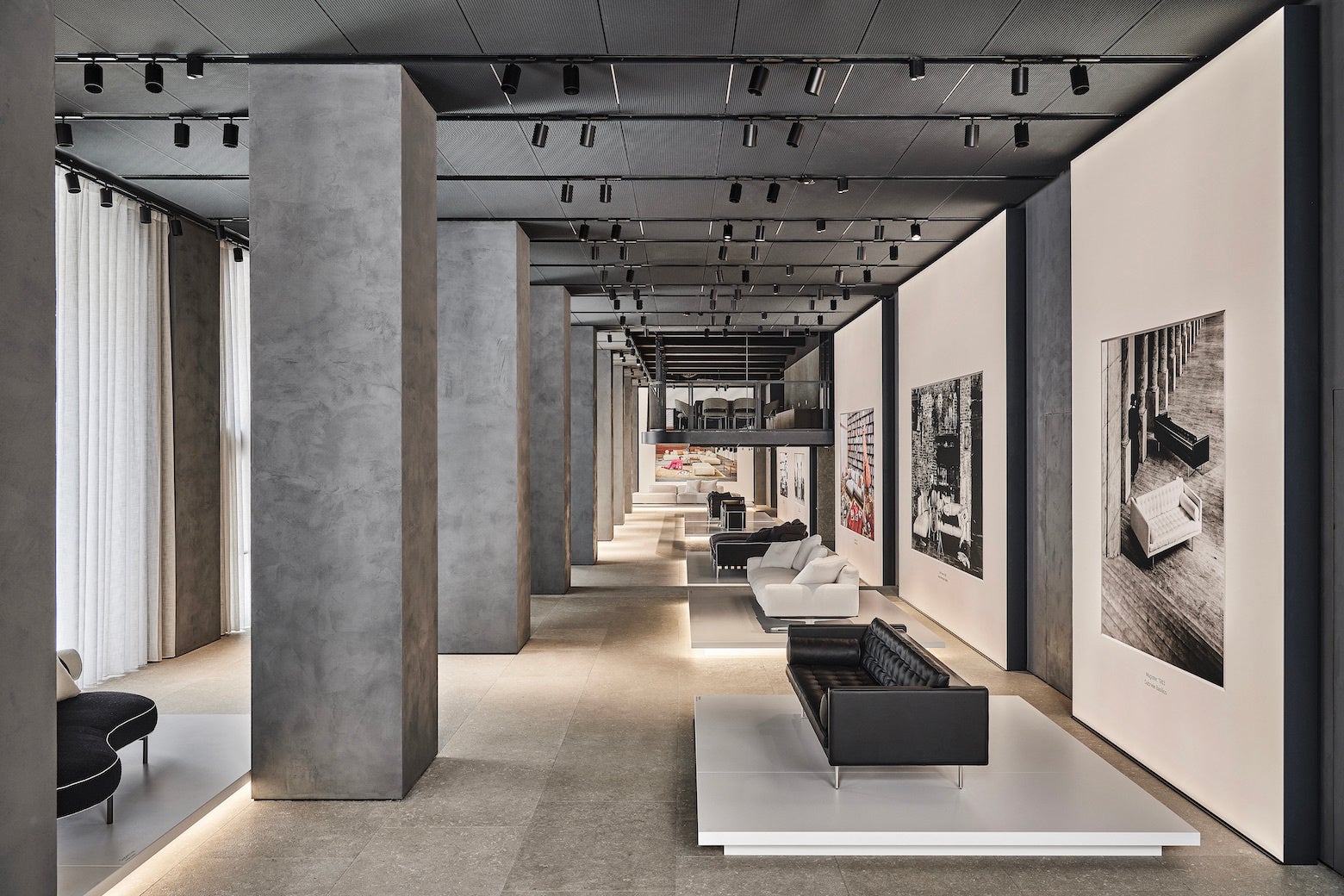 本展では、FLEXFORMのアイデンティティであるシグニチャーフォトとプロダクトを通して、そのストーリーが語られています。80年代から現代に至るまでの時系列に沿い、写真家4名によって大型パネルに再現された広告キャンペーン写真の数々が、FLEXFORMのタイムレスなスタイルを印象づける旅へと誘います。FLEXFORMのコミュニケーションの進化と物語という次元にこだわりながら、新たなコラボレーションで大きく革新していく姿勢をぜひこの機会にご覧ください。