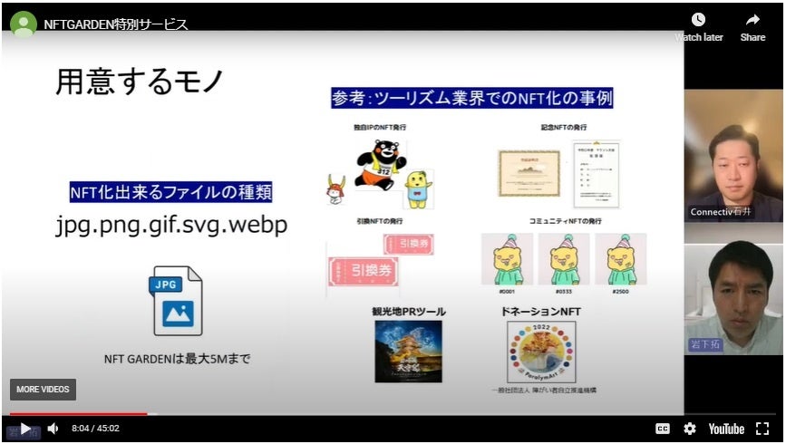 NFT生成プラットフォーム運営企業Connectiv株式会社様とのパートナーシップ協定により、無償会員様も含め、会員様は3ヶ月間無料でNFT生成(毎月最大125個程度)が可能です。