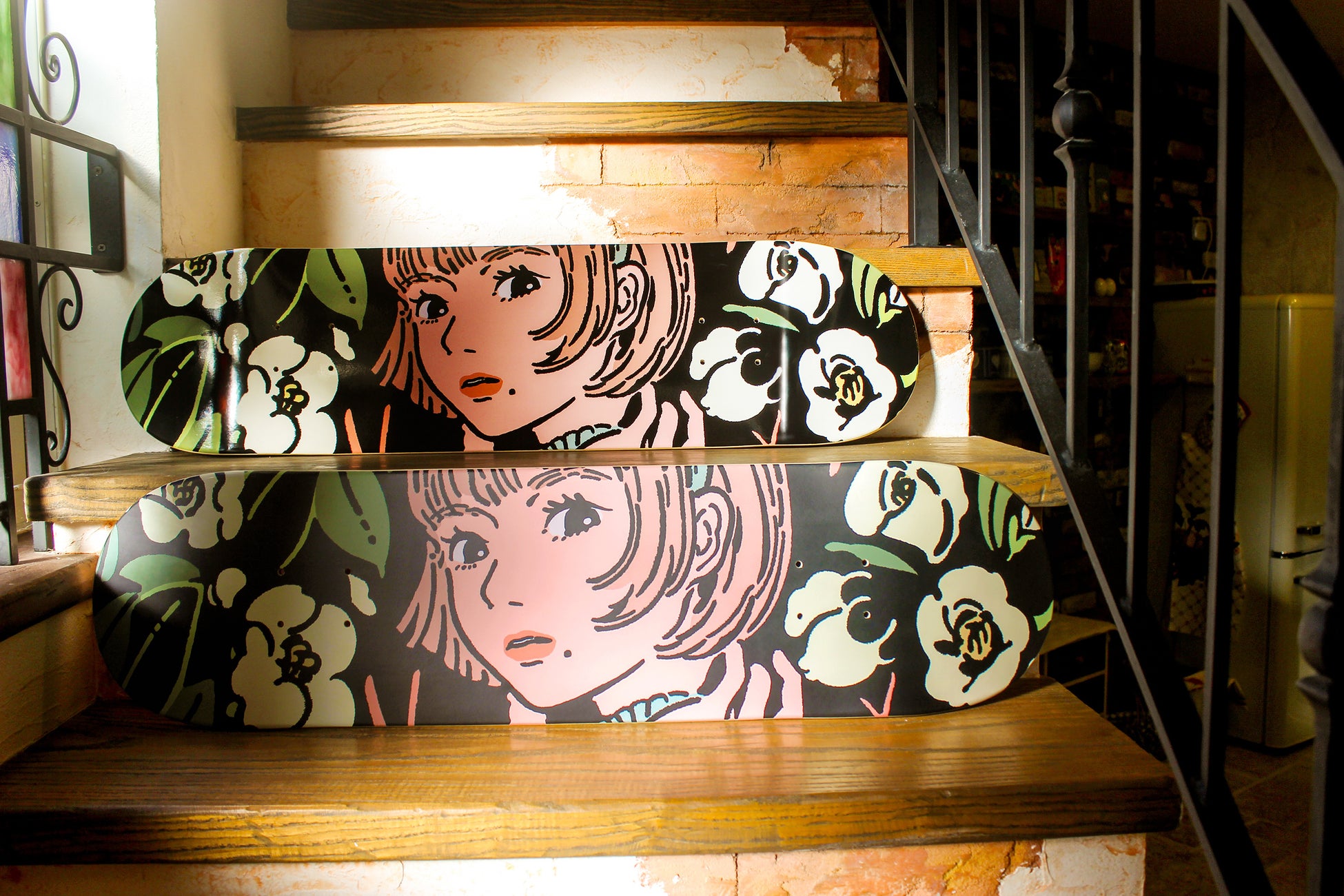 このタイアップ企画を通して、スケーターはもちろんのことスケボーに興味のなかった方々や悪い印象を抱いていた方にも、弊社のプリント技術を通じて興味を持って頂くことでスケートボードのイメージアップに貢献できれば幸いです。