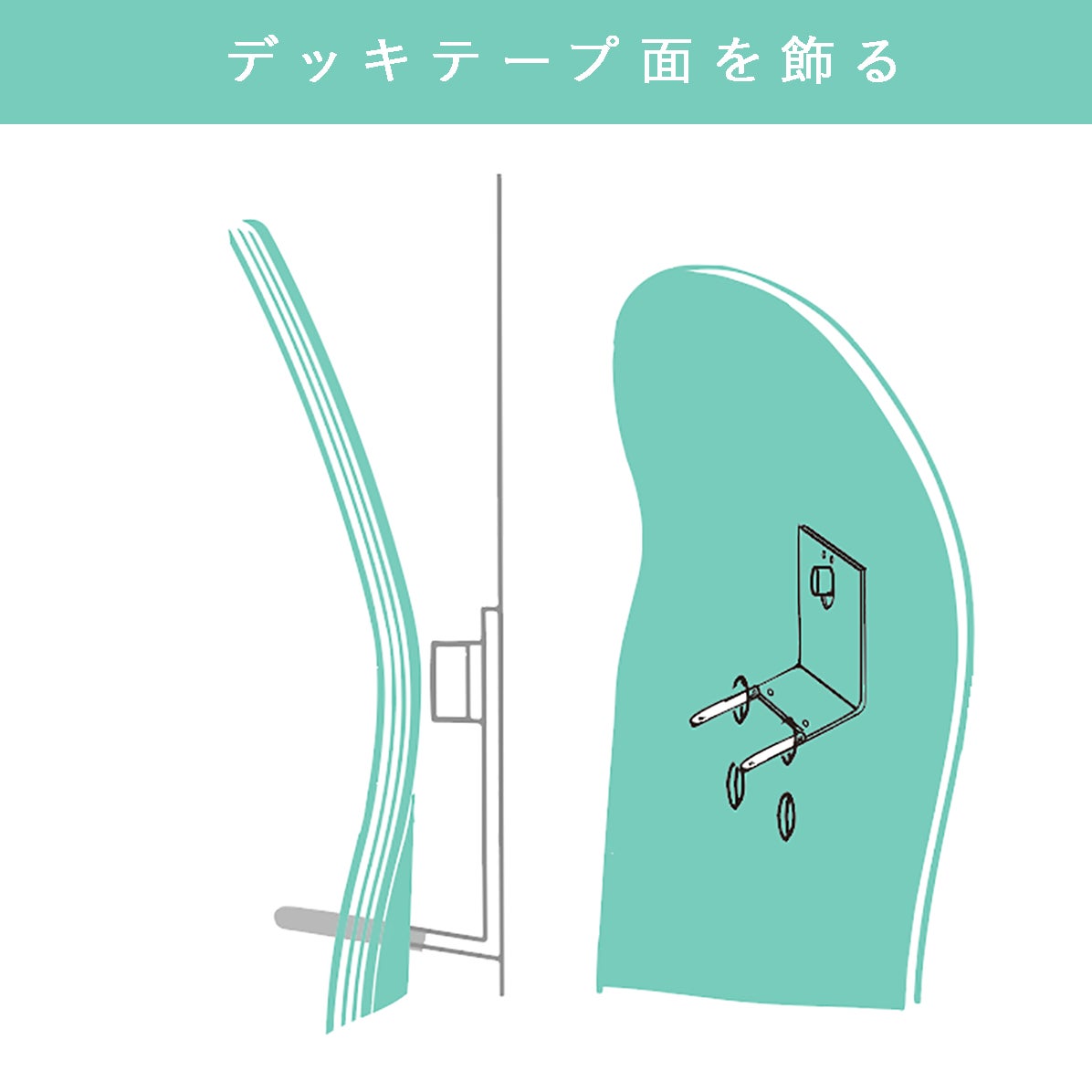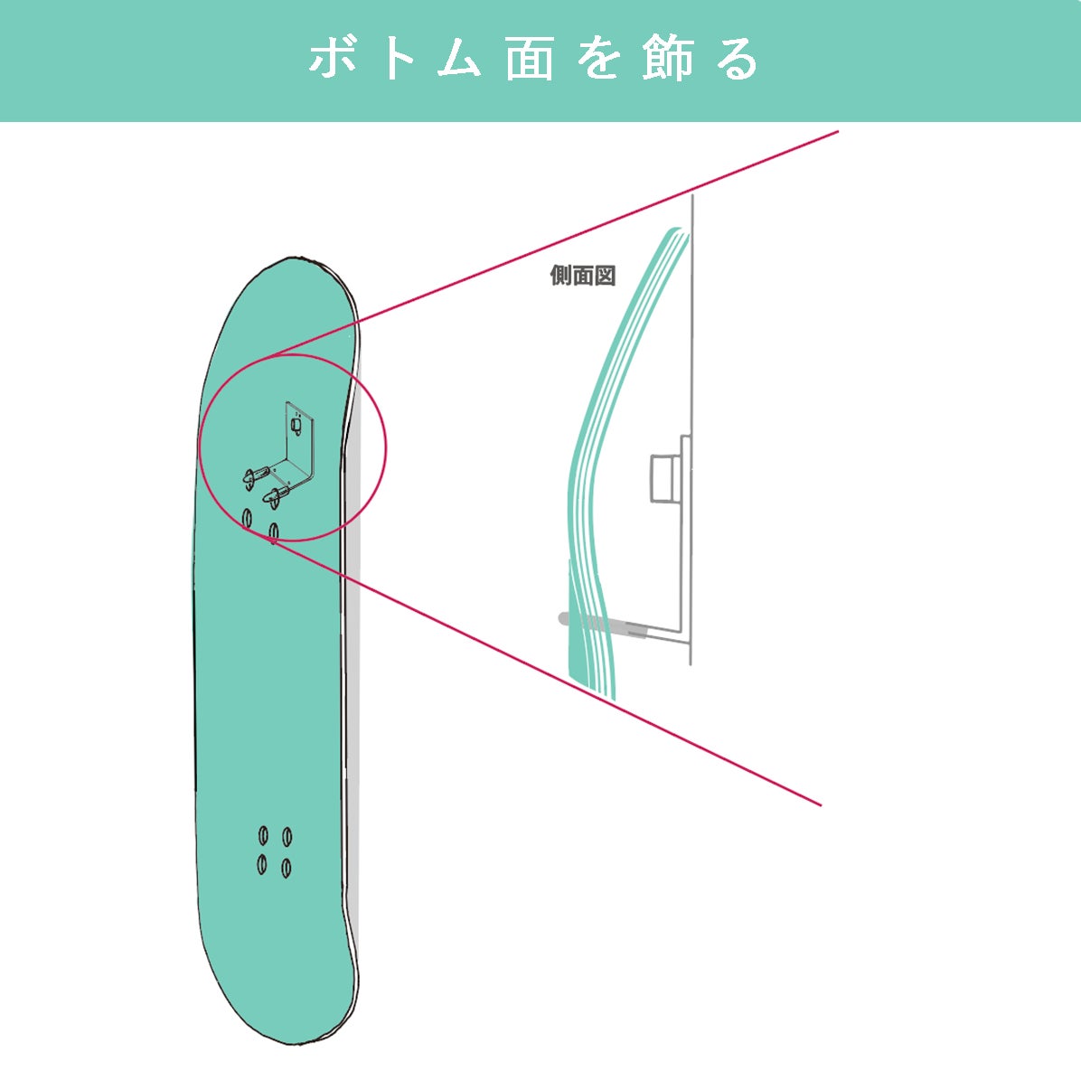 従来のスケボーフックは、ボトム面の片面をスケートボードデッキのみ飾ることができる限定的なものでした。「デッキテープ面も飾りたい」「キャップの部分が目立つ」「トラックを飾りたい」などのお客様の要望が多く、今回はその要望を全て叶えるように改善したものになります。