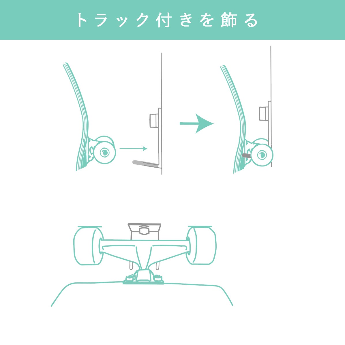 今回のリニューアルでトラックをつけた状態でも飾れるので、ディスプレイとしてだけでなく、スケーターの普段使いとしてもご利用いただけるようになりました。