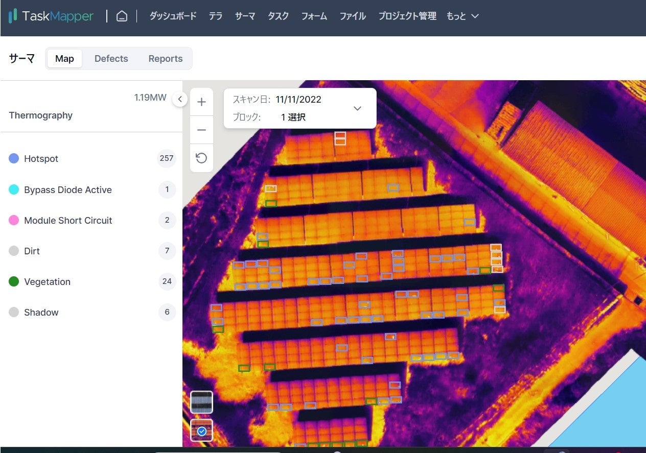 昨今、発電所のセカンダリ売買のエビデンスとして、監視データやメンテナンス履歴だけでなく赤外線画像解析を必須としているケースも増えており、今後は新設、中古売買、自家消費太陽光発電設備や屋根貸しPPAの安全性の確認としても重要な資料となっていきます。こういった背景として、不具合傾向にあるパネルでも発電しているため、計測した数値だけではパネルの善し悪しがわからないということが徐々に理解されてきたこともある。