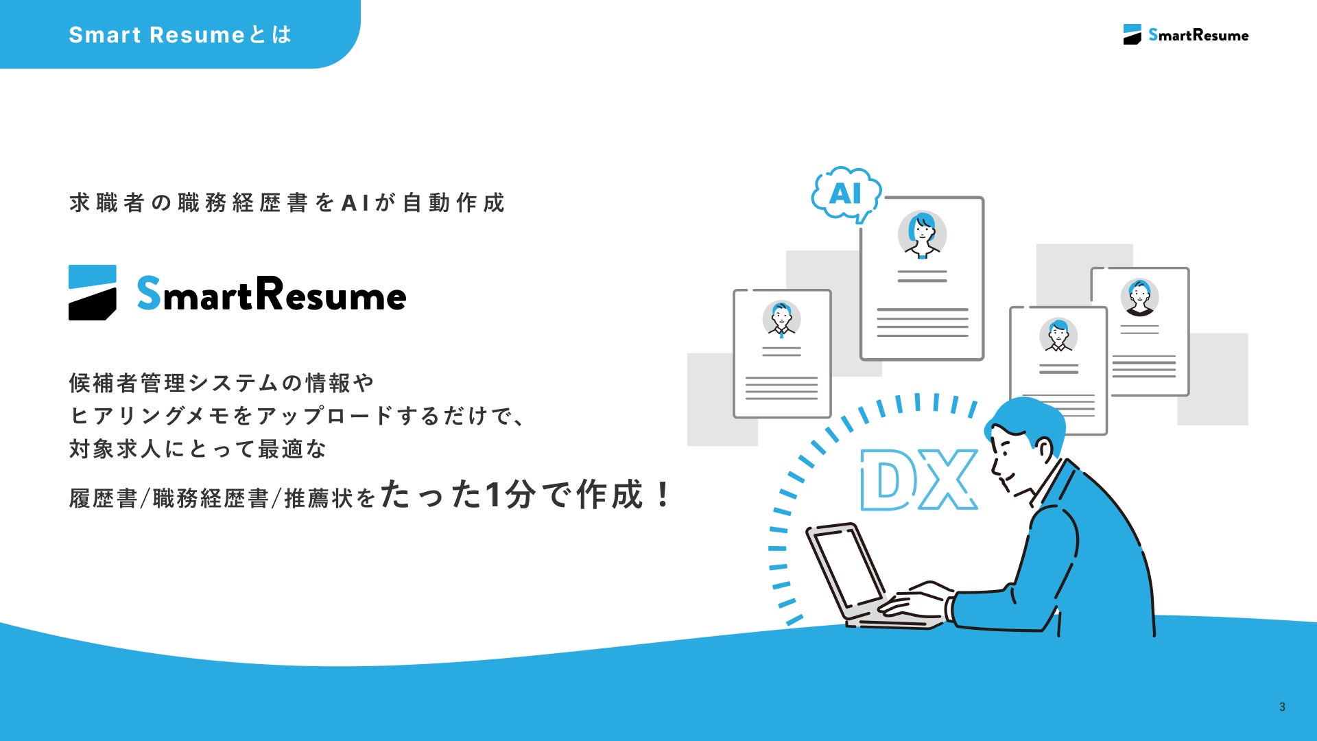 転職エージェントの書類作成業務を大幅効率化!AIが1分で履歴書・職務経歴書・紹介状を自動生成する「Smart Resume」