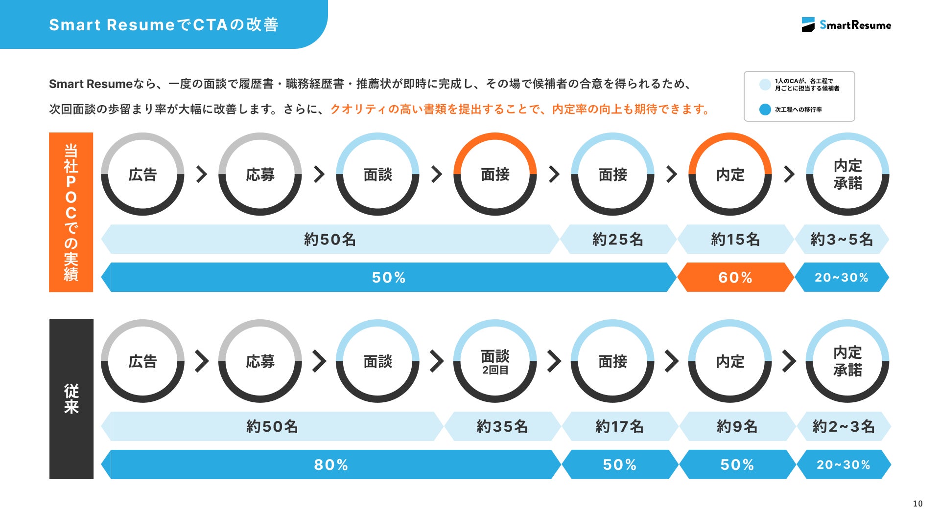 面談時に即時高品質な書類を生成できるため、候補者のモチベーション低下を防ぎ、スムーズに選考へ移行。