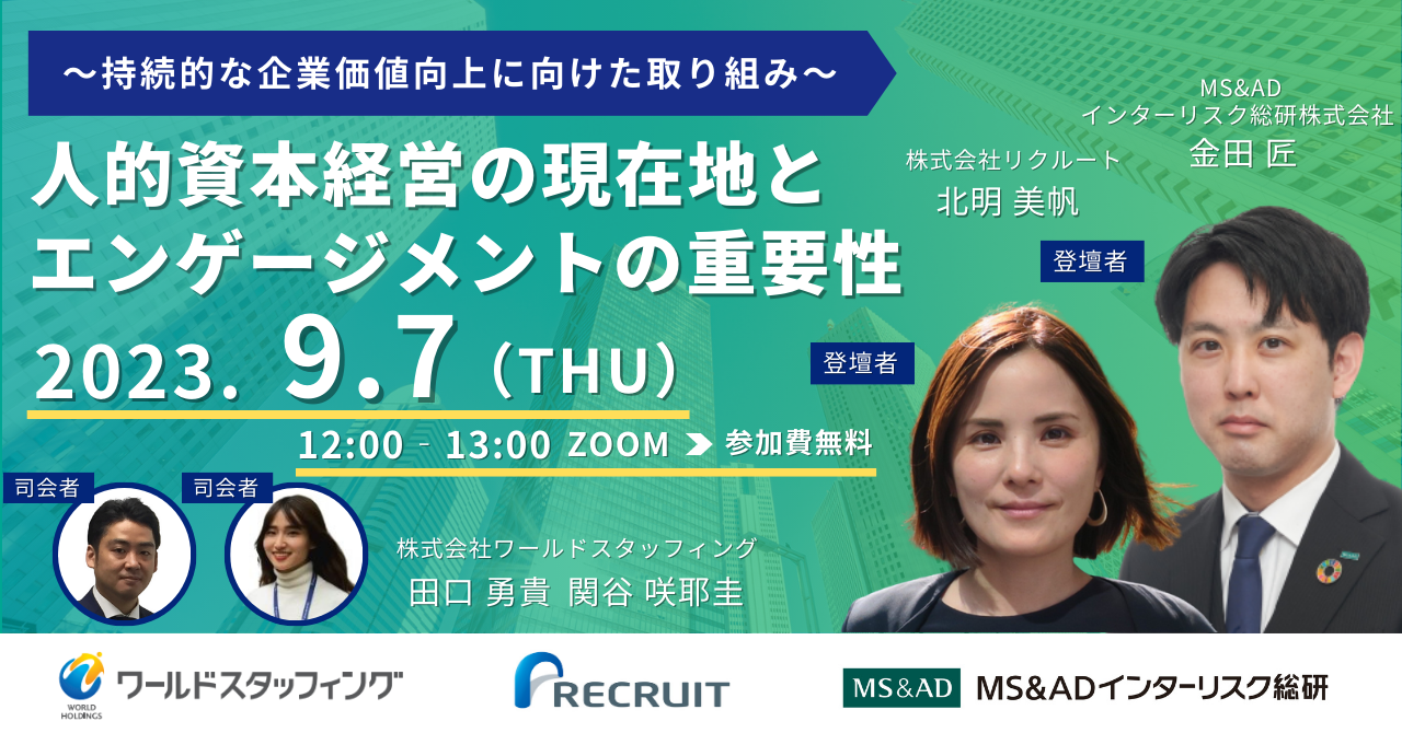 【経営層・人事部門責任者向けセミナー】「人的資本経営の現在地とエンゲージメントの重要性」を9/7(木)に開催します。