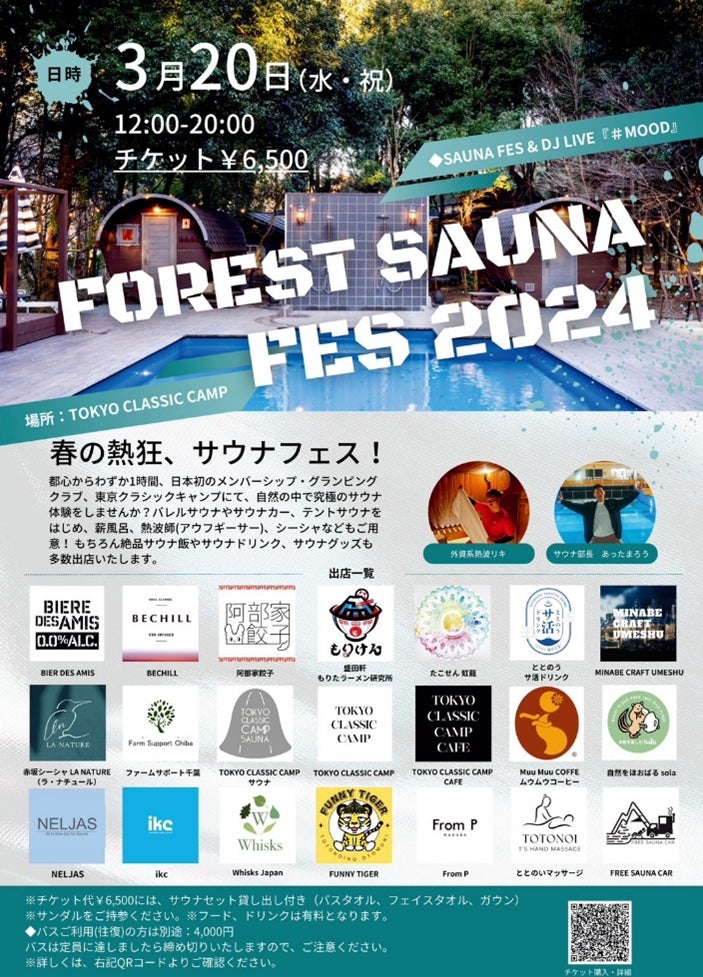 日本初の会員制グランピング施設「東京クラシックキャンプ」で究極のサウナ体験を~3月20日(水・祝) 「FOREST SAUNA FES 2024」開催~