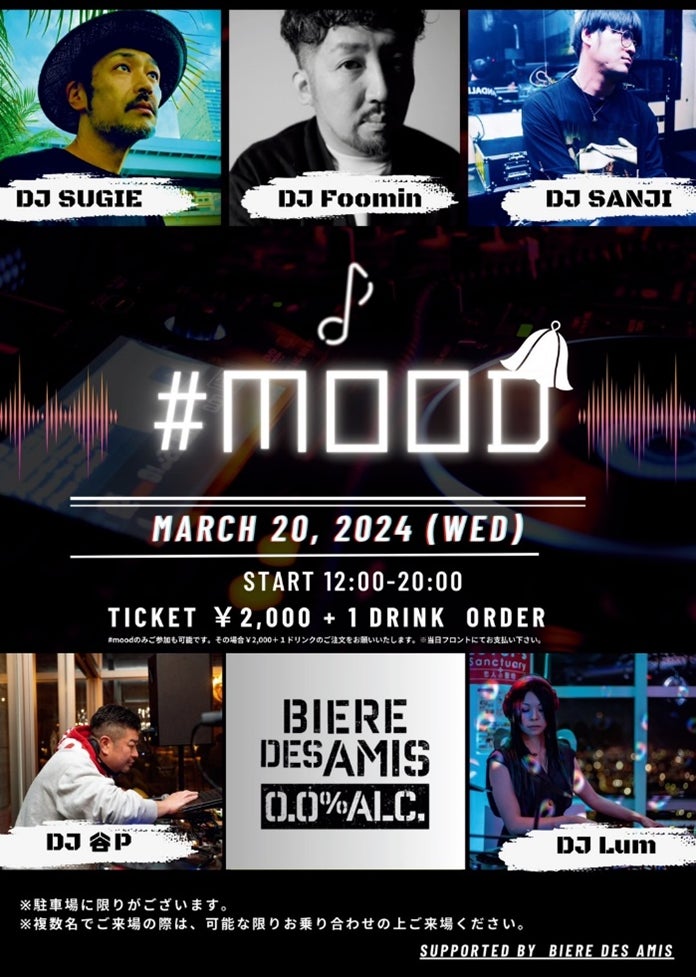 DJ「#MOOD」のみのご参加は2,000円+1ドリンクご注文となります。