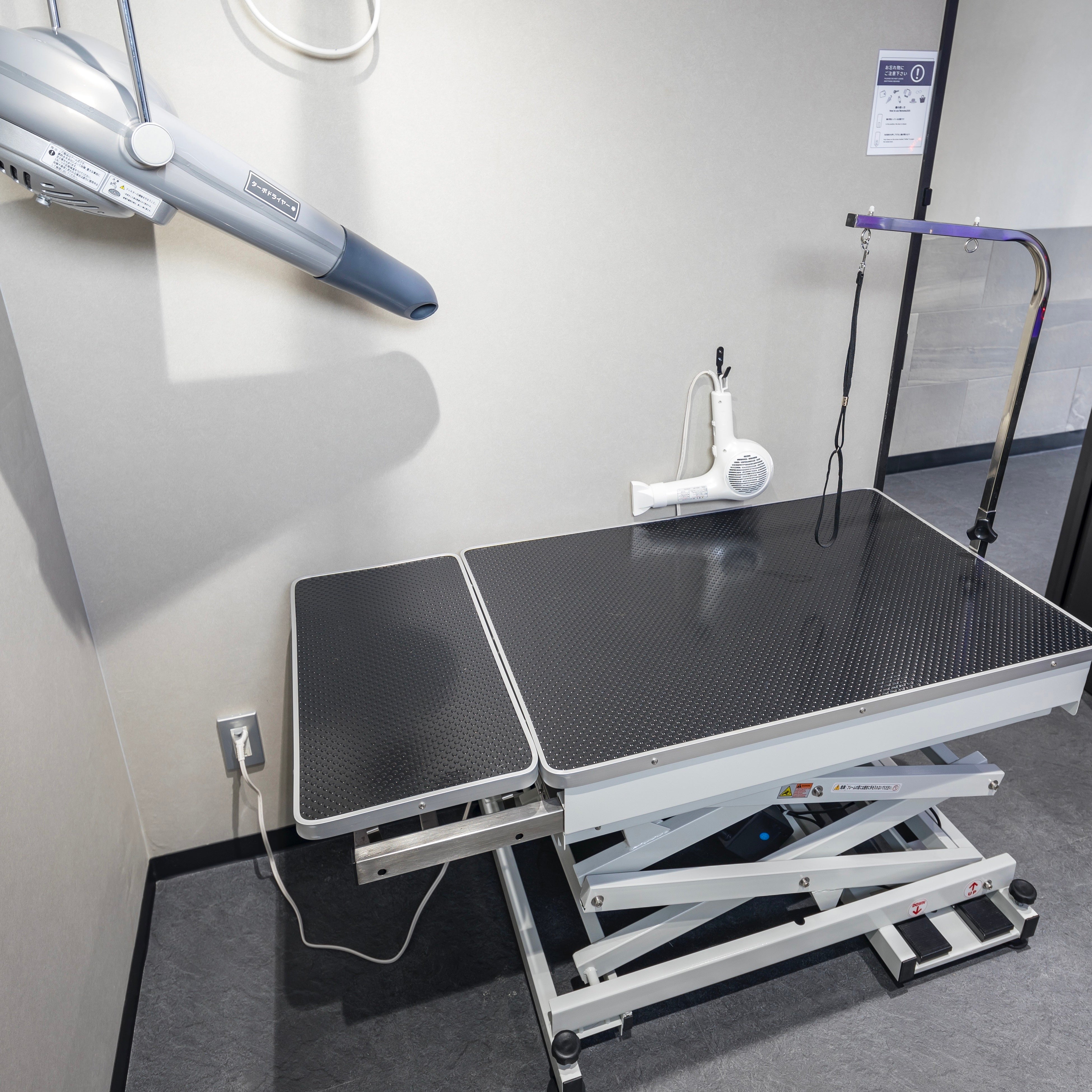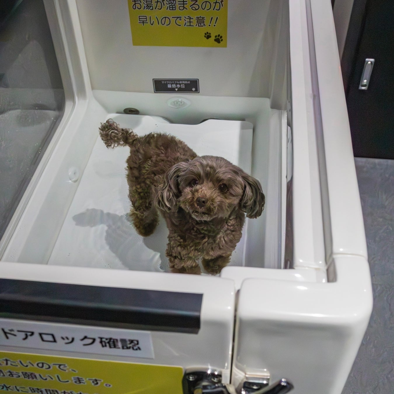特許取得⾼度マイクロバブル式バスタブ・シャワー、⼤型ドライヤー、昇降式ドライヤー台などを完備しており、飼い主自ら愛犬を洗うことが可能です。また、事前予約制の無人型店舗のため飼い主様と愛犬だけのリラックスした空間をお過ごしいただけます。