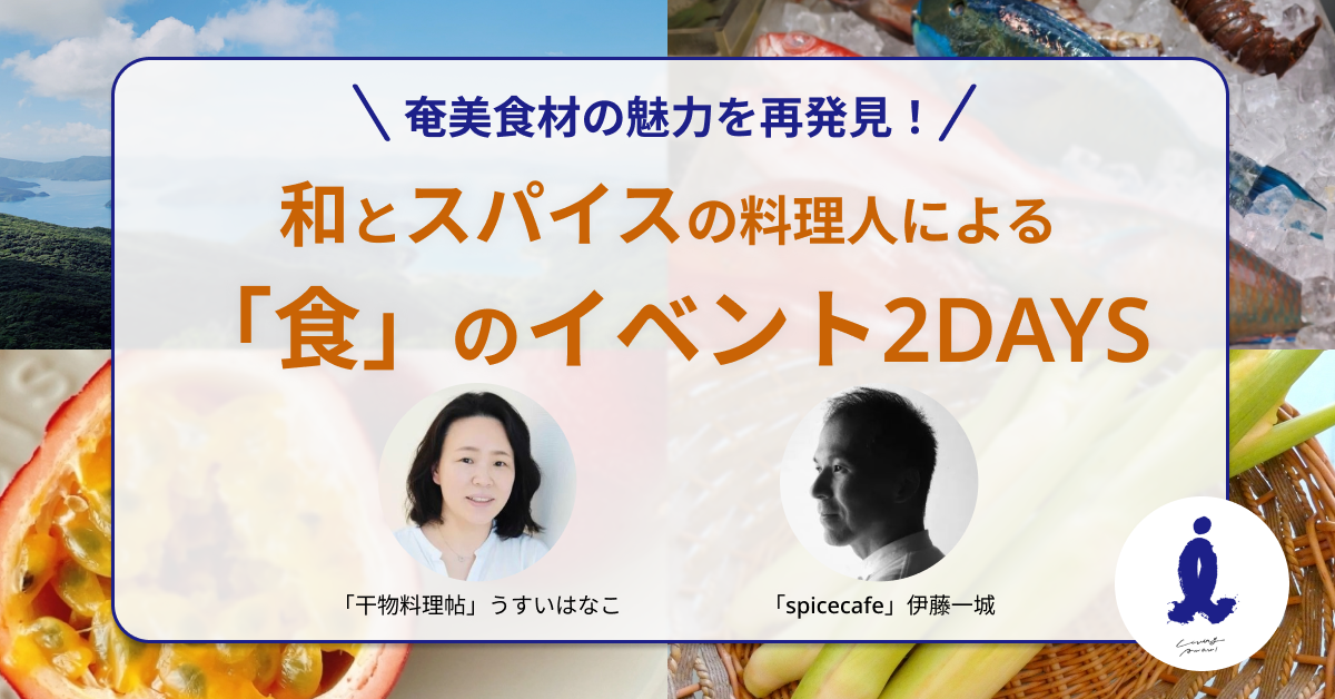 運営するライフ&ワークスペース「Living AMAMI」を起点に奄美の地元食材の魅力を島内外の料理人によって掘り起こし、その可能性を発信するプロジェクトを推進してまいります。その第1弾として、2023年11月29日と30日の2日間に渡り、ミシュランガイド東京2023ビブグルマン選出店「spicecafe 」の伊藤一城シェフと、著書「干物料理帖」で2020グルマン世界料理本大賞Fish&Seafood部門グランプリを受賞した料理人・うすいはなこ氏にご来島いただき、限定メニューの提供や料理教室を開催します。
