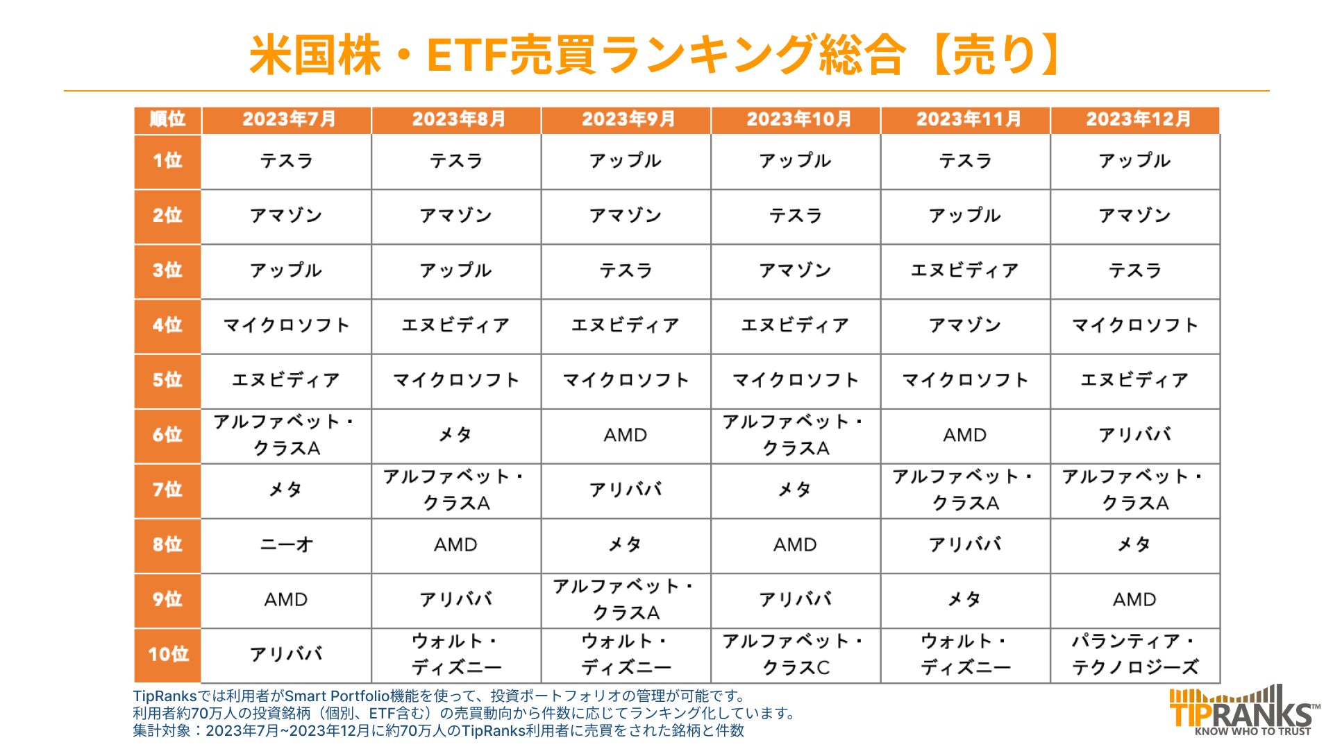 TipRanks Ltd.(本社:イスラエル、CEO:Uri Gruenbaum)は2024年1月16日(火)、運営する株式投資分析サービス「TipRanks.com」において、2023年7月〜2023年12月にサービス内機能のスマートポートフォリオを利用する個人投資家の売買動向を対象に、データ分析と総括、最も買われた銘柄・売られた銘柄のランキングなどを発表いたしました。