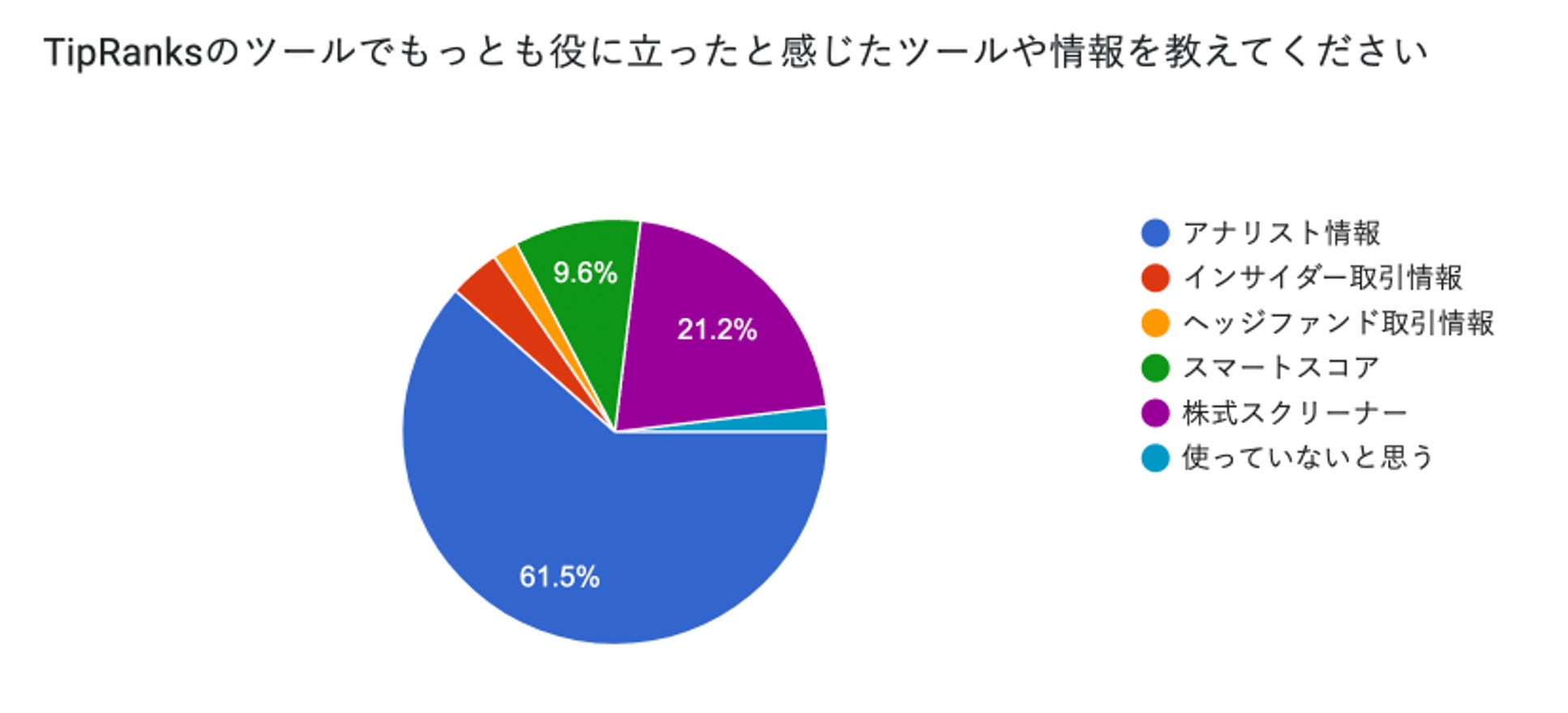 大会終了後に行った参加者へのアンケートによると、大会期間中の米国株投資の調査や分析に使ったTipRanksが提供するツールの中でも、特に投資推奨および目標株価を示すアナリスト予想を表示するツールが最も投資の意思決定の役に立ったとの結果が出ました。