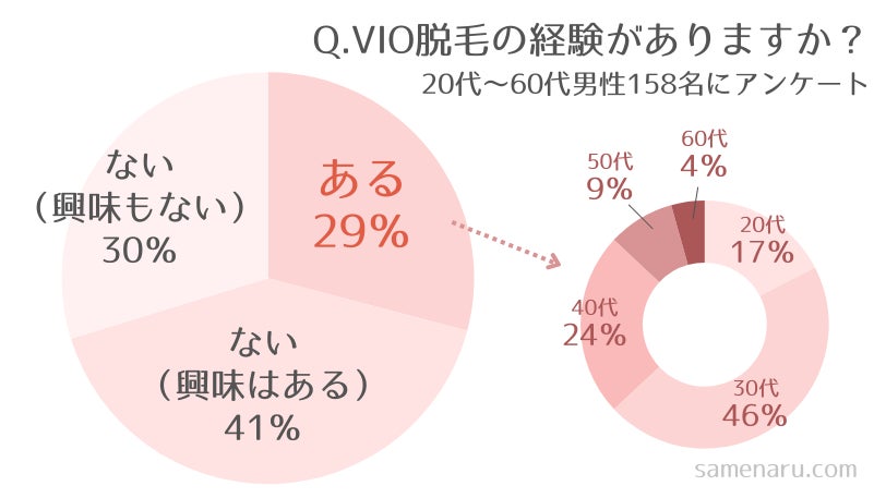 男性でも29%がVIO脱毛をしているというのは正直驚きました。「興味はある」という人を合わせたら70%と、脱毛への意識の高まりが伺えます。