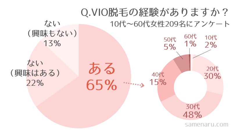 「脱毛経験がある人」は65%もいました。「脱毛経験はないけど興味はある人」も入れると、87%の女性がVIO脱毛に関心を持っていることが分かりますね。
