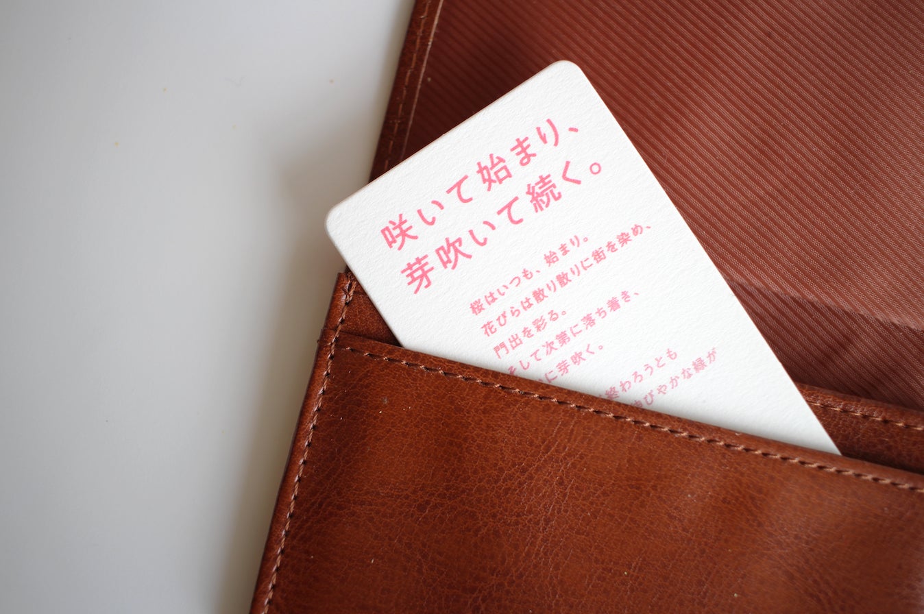 フレグランスカードは名刺サイズですので、お手持ちの名刺入れやお財布などに入れることで蘖の香りが名刺等にほのかに香り移りをいたします。名刺交換などのタイミングでささやかなおもてなしを演出することが可能です。