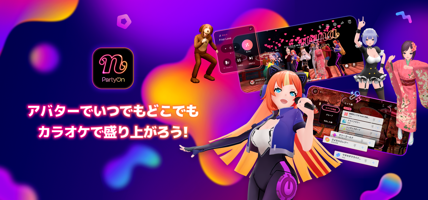 「nana-PartyOn」は、バーチャル空間で人とつながりカラオケやパフォーマンスを楽しめるアプリです。