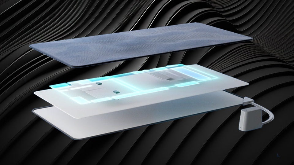 一見、普通のエアパッドですが6つのエアバックが内蔵されており複雑な動きを集積回路によってプログラミングし制御して極上のストレッチ体験を実現しました。