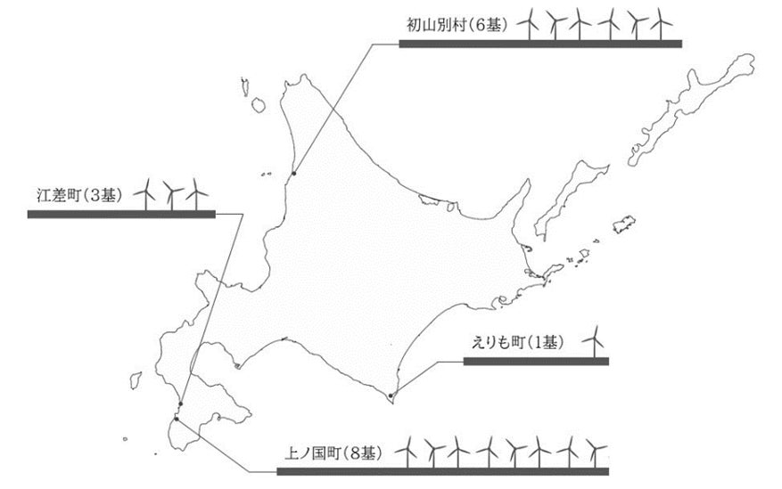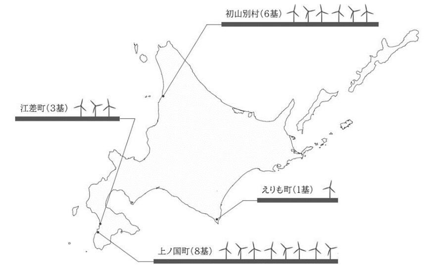 また2022年より当社グループ会社である株式会社北海道エナジーソリューション(北海道札幌市豊平区)、北海道エナジー開発株式会社(北海道札幌市中央区)にて建設を行ってまいりました全18基の風力発電所が北海道内にて全基稼働しました。発電所は初山別村6基、えりも町1基、上ノ国町8基、江差町3基の全18基。想定発電量は年間約160万kWhを見込んでいます。
