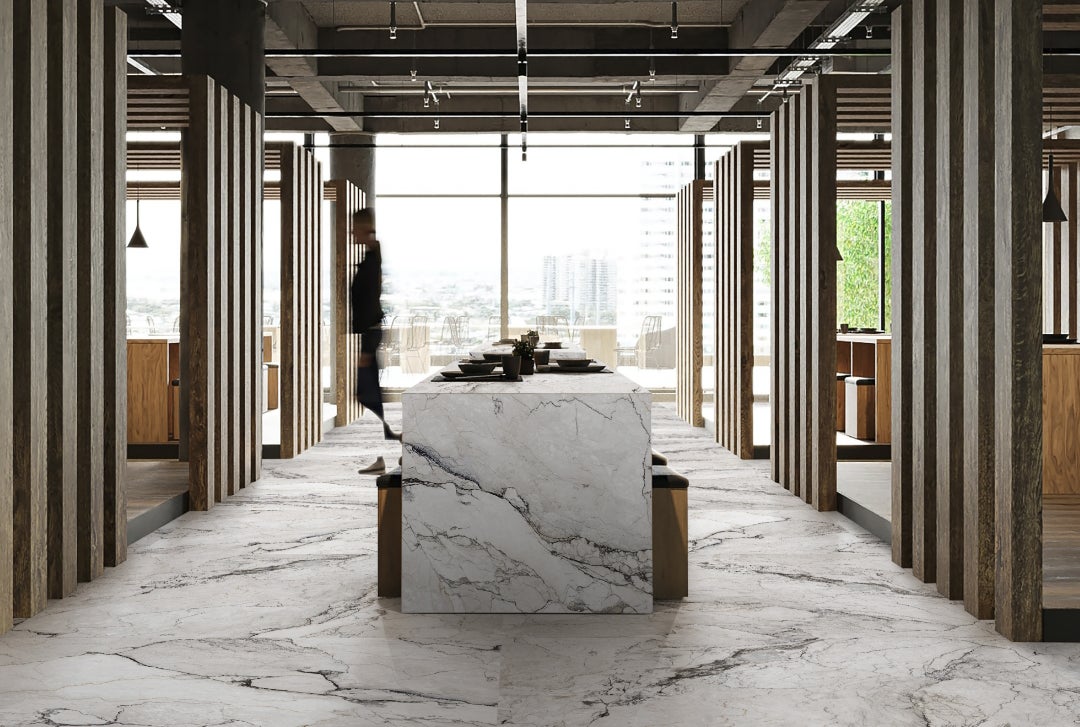 「NeoLiTH」は壁・床・天板など様々な用途で使用できるスペイン産の大判セラミックスラブです。