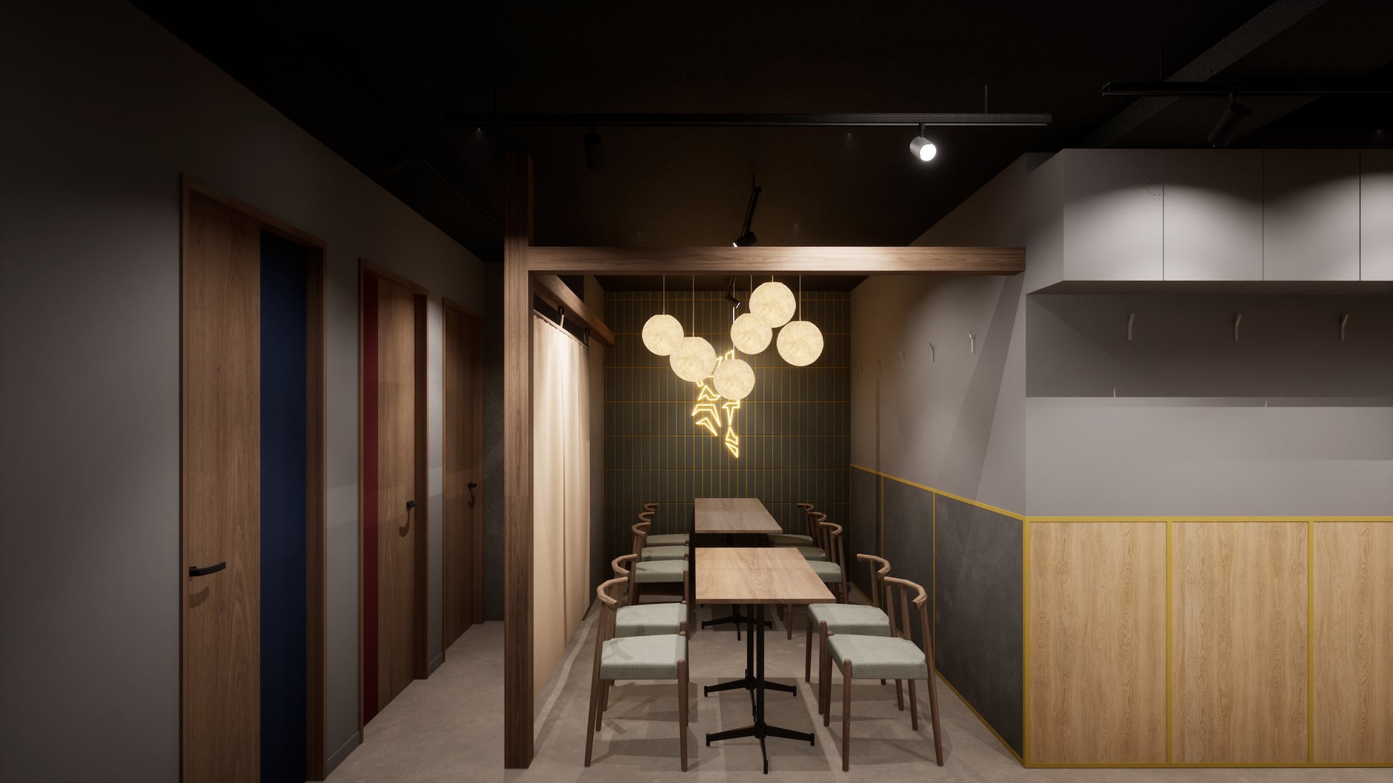 内観は、明るく清潔感があり、男女問わずお1人でも入りやすい雰囲気に仕上げました。客席からは、炭火焼で調理する調理場が見え、目でも楽しむことが出来る設計となっています。