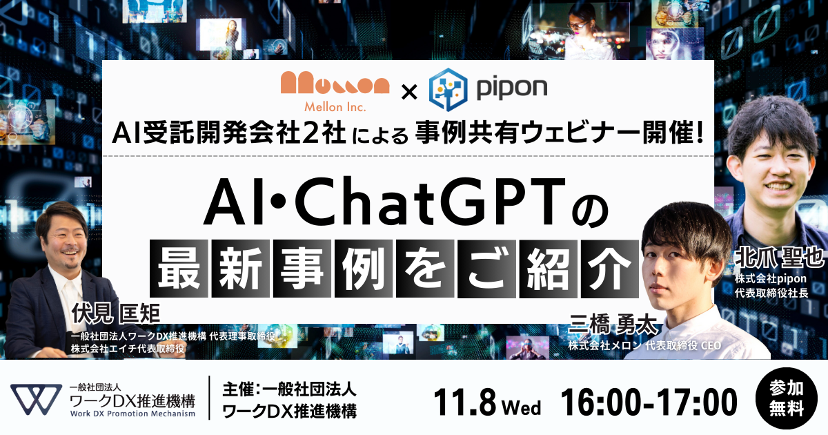 【11月8日開催】AI・ChatGPTの最新事例をご紹介するウェビナー開催!株式会社メロンCEO三橋が登壇!
