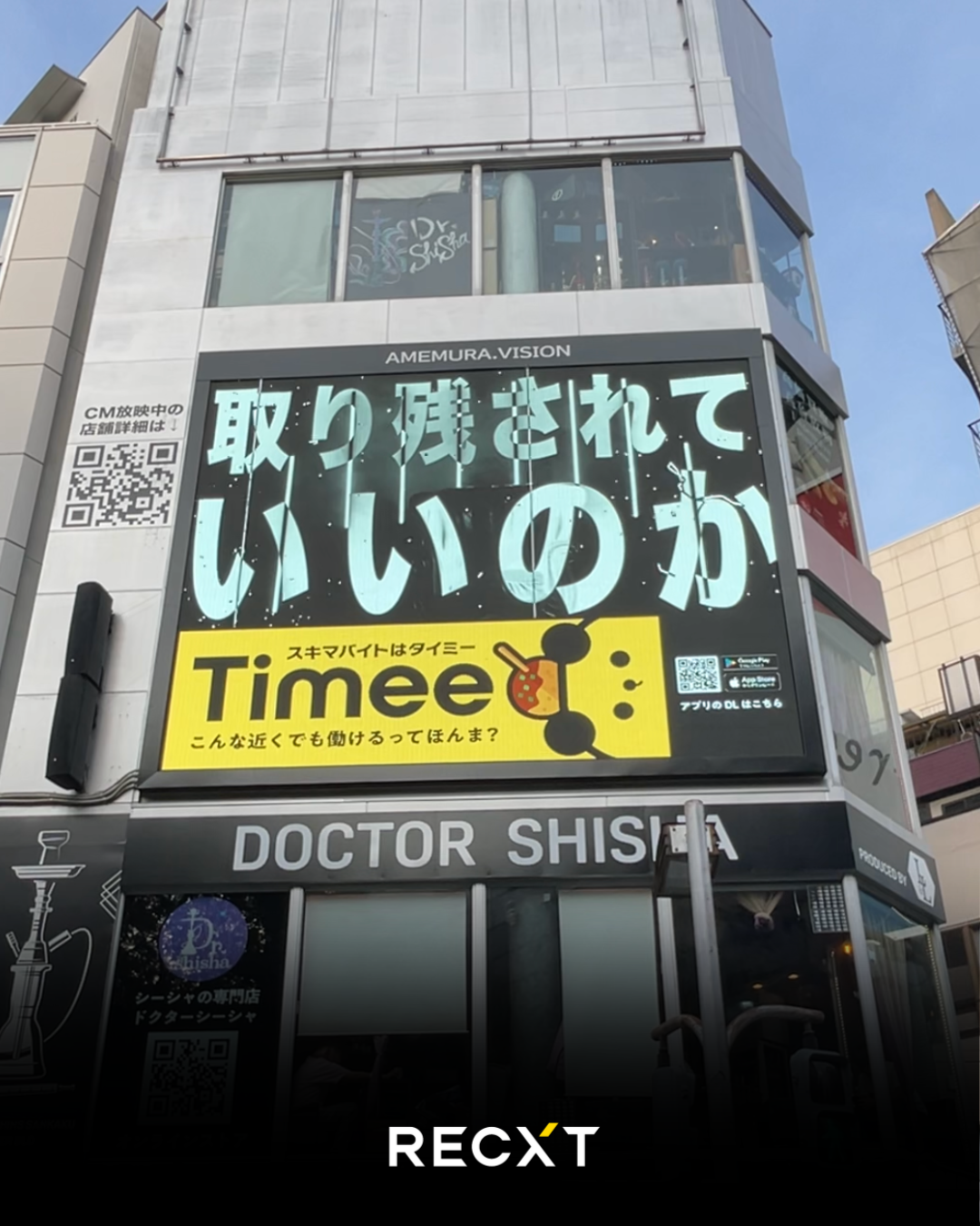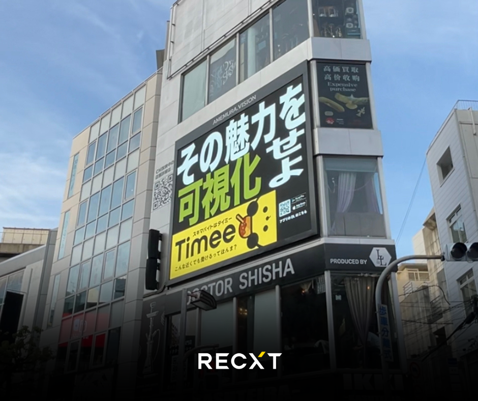 大阪の心斎橋にあるアメリカ村は、関西において若者の文化の発信地として平日でも昼夜を問わず若者が集う繁華街です。RECXTは、大阪から全国へクリエイティブの力を届ける会社として本社からほど近くに位置する心斎橋の地であらゆるメッセージを発信してまいります。