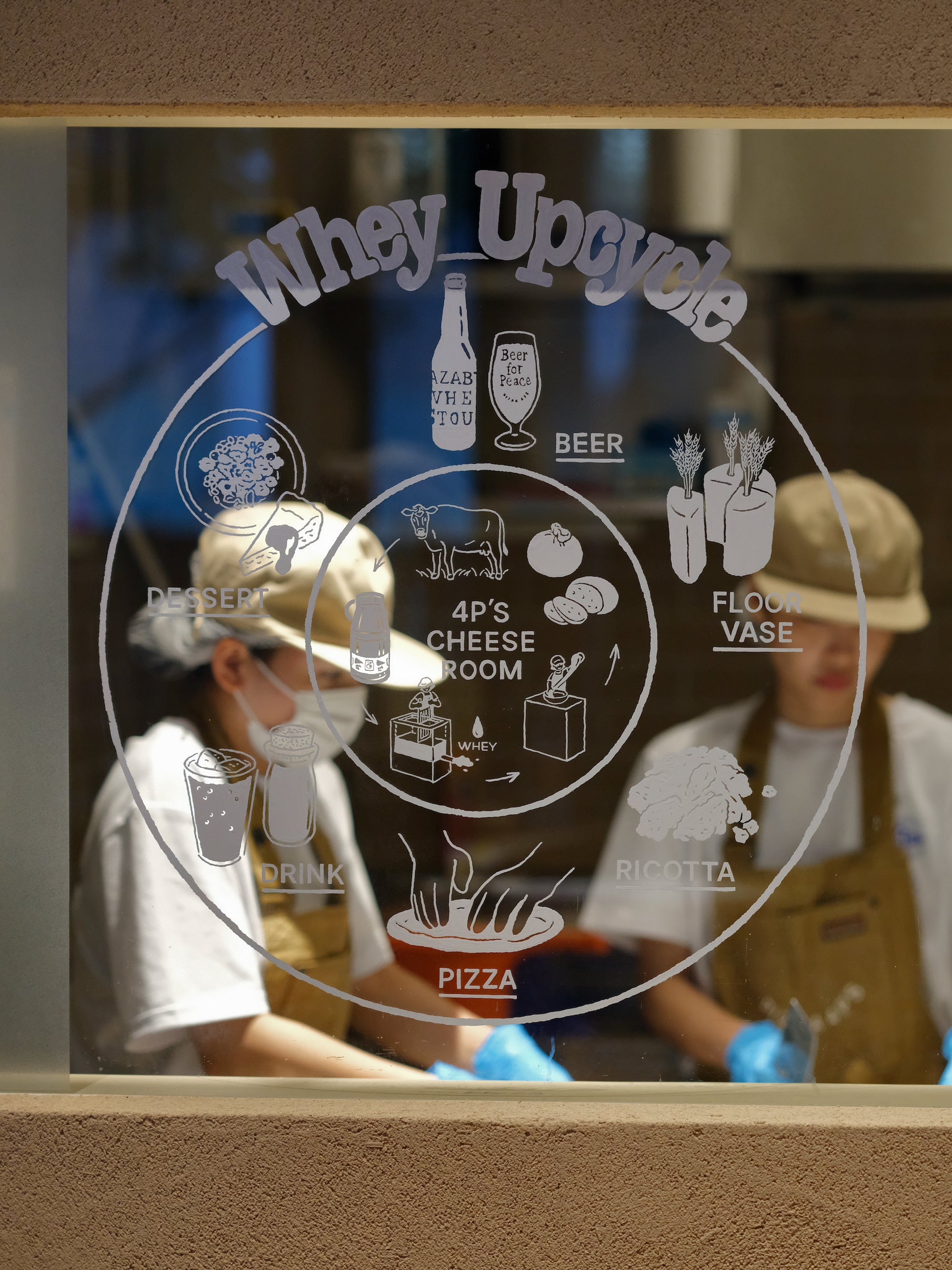 チーズ製造時に発生する副産物「乳清(ホエイ)」は、ピザ生地をはじめ、ビールやソーダ、デザート、リコッタチーズ、さらに花瓶にまで有効活用。