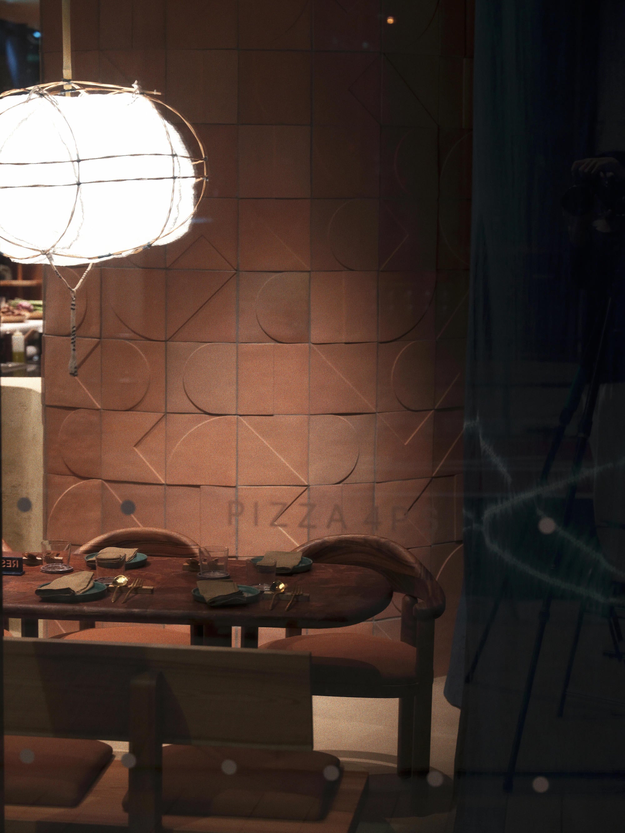 Pizza 4P's Tokyoは、私たちが地球の一部だと思い出すことができる、自然由来のデザインを用いた空間が特徴です。